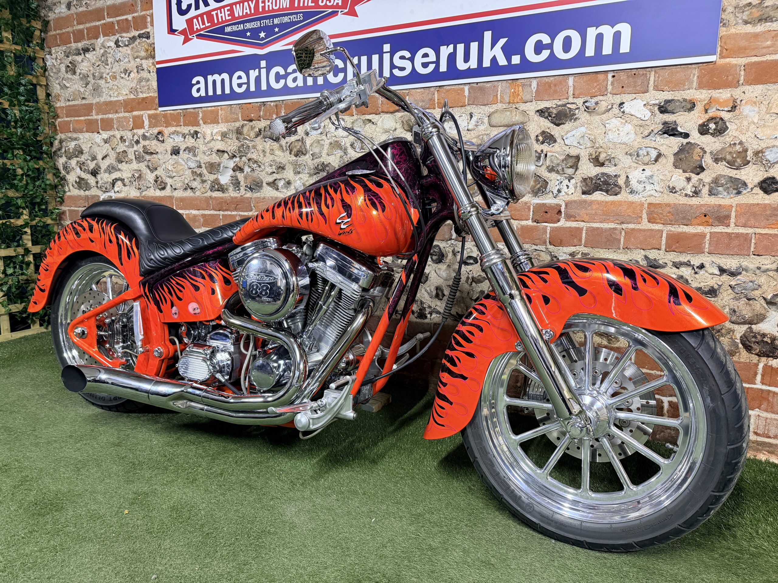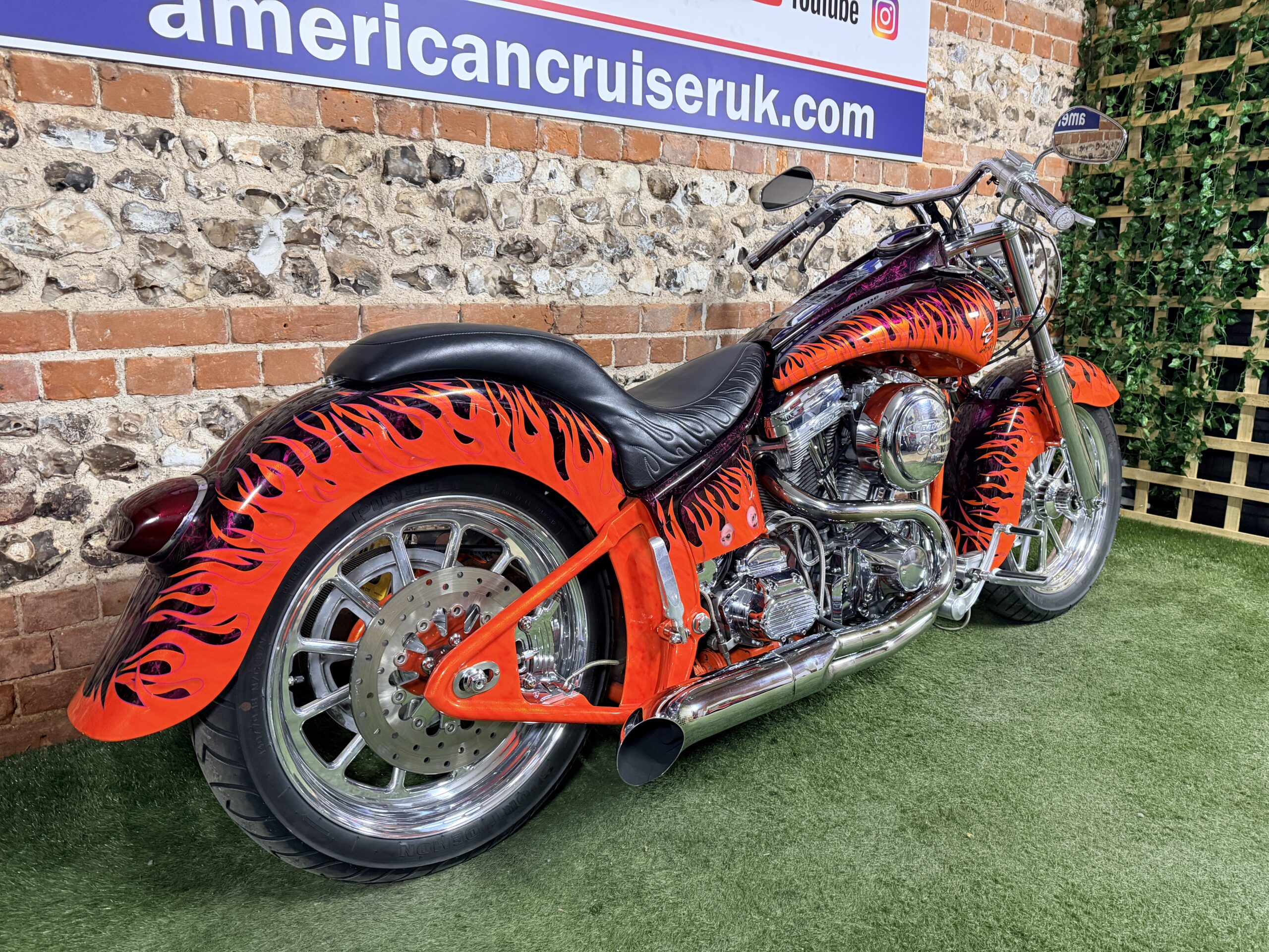 At the end of the day, this bike is a rolling conversation piece and a head-turning cruiser that you won’t find anywhere else. It’s just as perfect for someone who wants to ride out and steal the show at bike nights as it is for a collector who might display it like the work of art it is. When you pull up on this thing, be prepared for a crowd and lots of questions – it’s that kind of bike. The flames shimmer in the sun, the engine’s got that nostalgic yet strong heartbeat, and the whole vibe of the bike is pure old-school Americana. Viewing is by appointment only, so if you’re as passionate about unique custom bikes as we are, come see it in person – I promise you won’t be disappointed. This is more than a motorcycle; it’s an experience, a conversation starter, and a seriously fun ride all wrapped into one. Come ready to fall in love, because this Classic Cycle Works Softail will make an enthusiast’s heart race. Enjoy the rumble and the admiring looks – this rare beauty deserves an owner who will appreciate every bit of its character and craftsmanship.