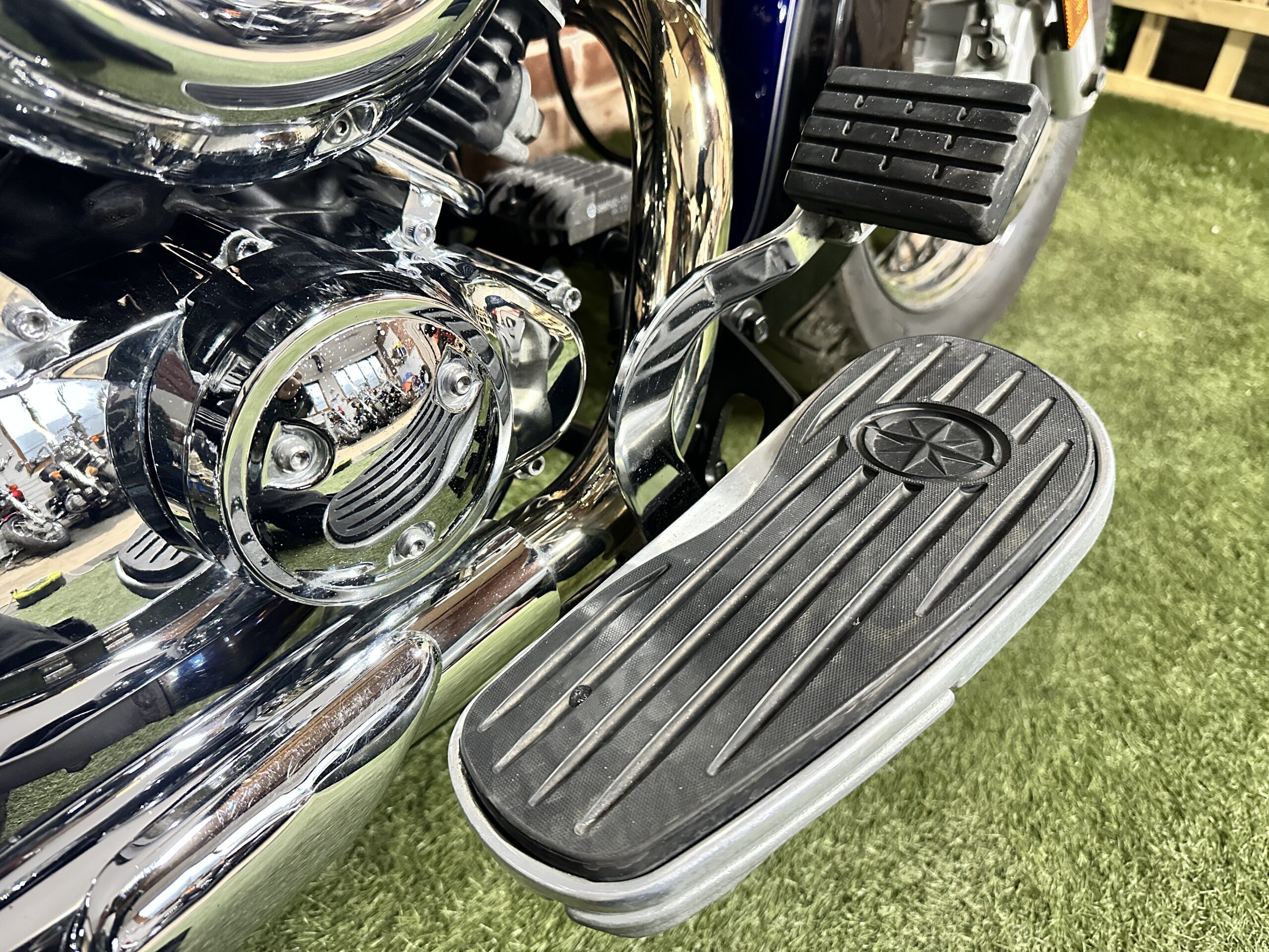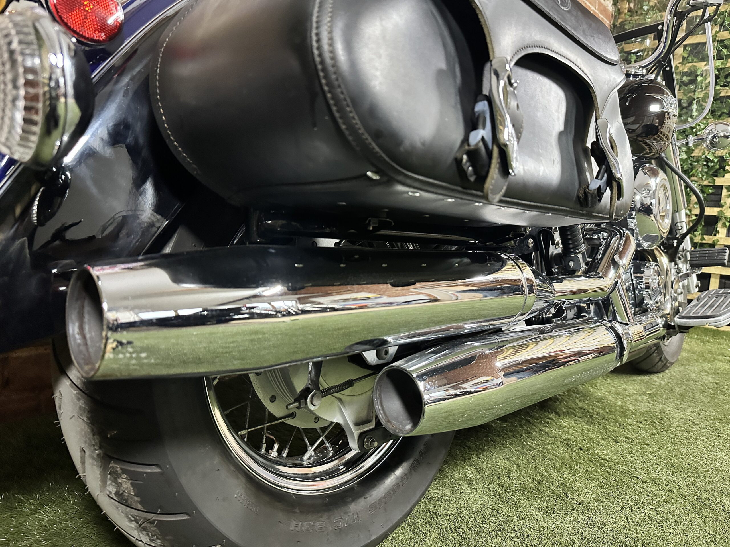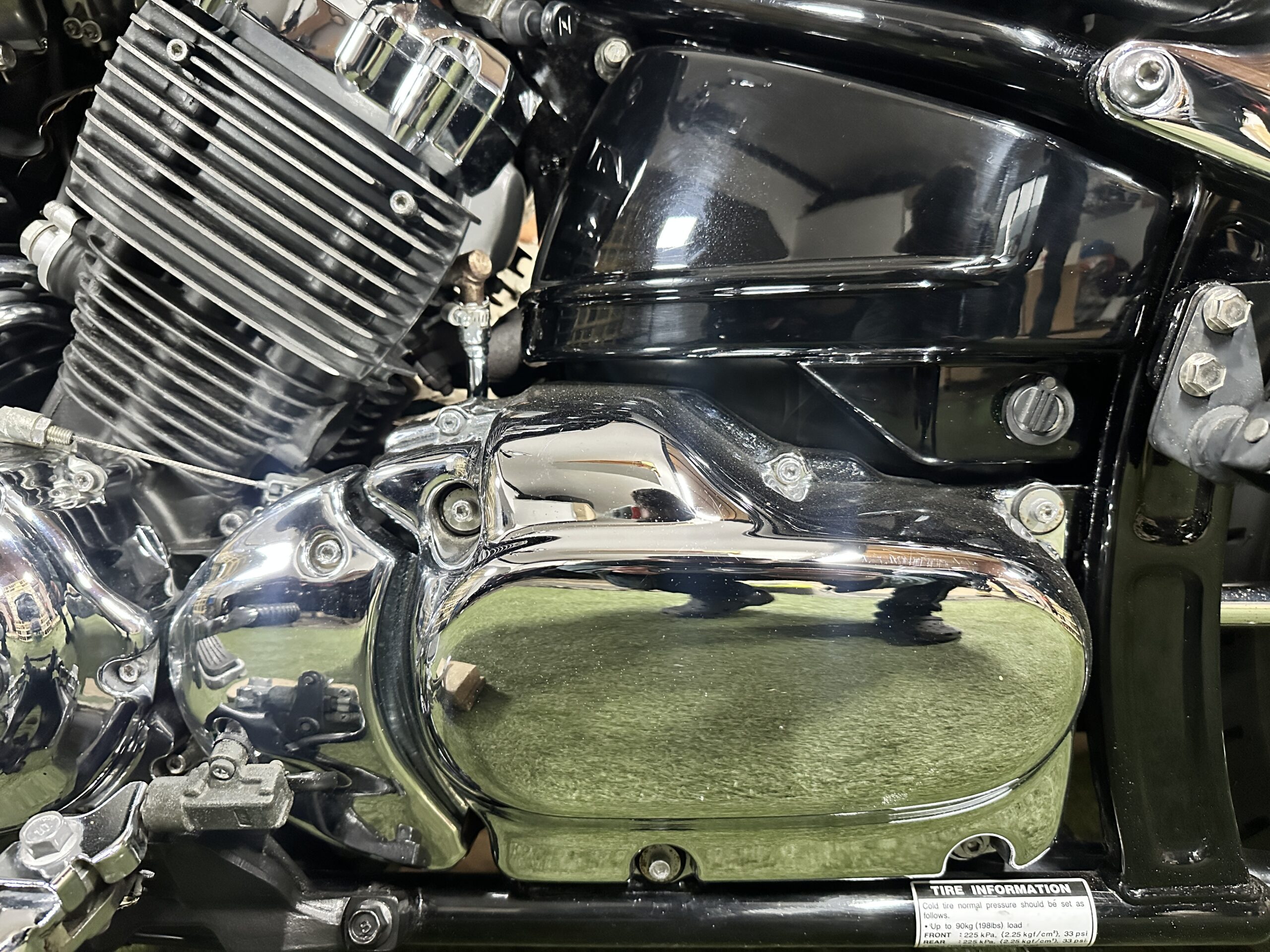 Colour: The bike’s factory Black/Blue metallic paint scheme is a real head-turner. In the sunlight, the blue flake in the paint pops against the black, underlining the Classic’s beautiful lines. Coupled with loads of chrome on the engine, spoked wheels, and chunky exhaust pipes, this DragStar exudes the authentic cruiser look that never goes out of style. (And yes, all that chrome and paintwork is in excellent condition – more on that below!)