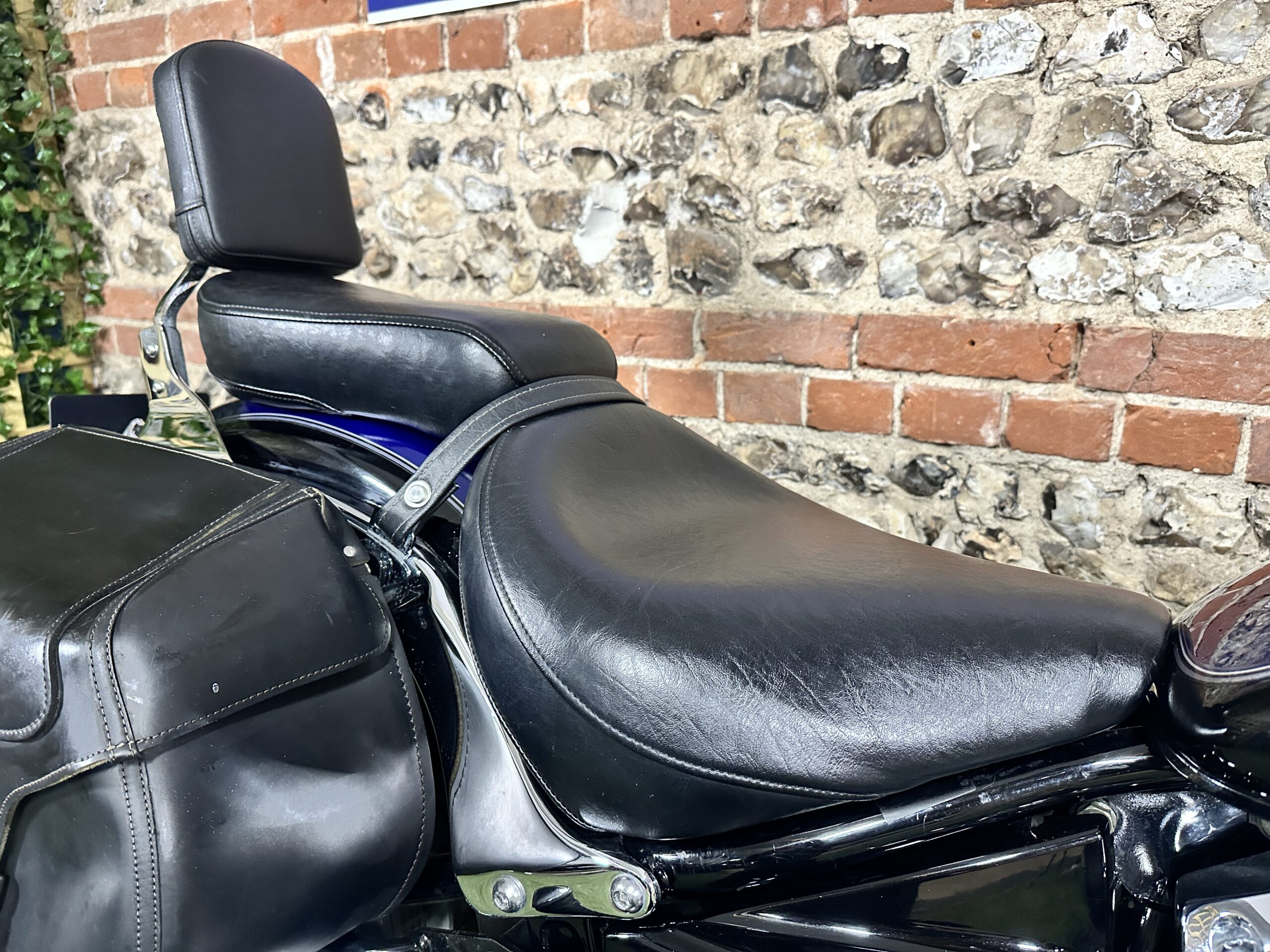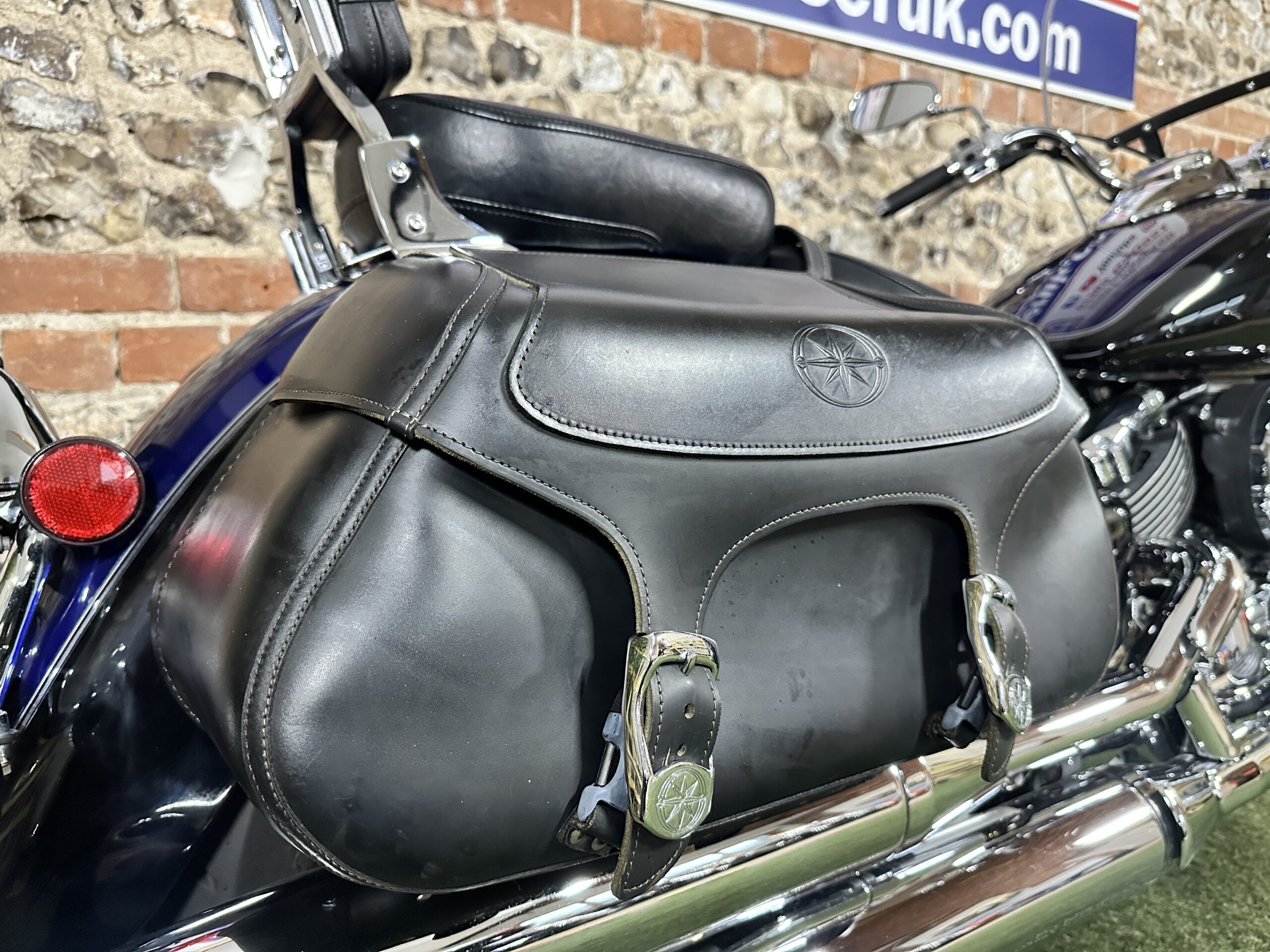 One of the delights of this particular 2007 XVS650 Classic is that it comes fully equipped for cruising. It features genuine Yamaha leather panniers (OEM saddle bags) and a passenger backrest – perfect for packing your gear and keeping your pillion comfy on weekend getaways. Additionally, an aftermarket windscreen is fitted, offering you wind protection on those faster A-road runs or breezy evening rides. These additions mirror the factory Silverado touring package Yamaha offered (which included a tall windscreen, backrest and saddlebags from new), so you’re essentially getting a Classic that’s road-trip ready from day one. All accessories are tastefully done and practical, enhancing both the look and functionality of the bike. The backrest even makes a nice support for the rider when cruising solo, and the screen is easily removable if you prefer the wind in your face. Overall, these extras add tremendous value – you’re set for anything from daily commutes to extended cruises with no further mods needed.