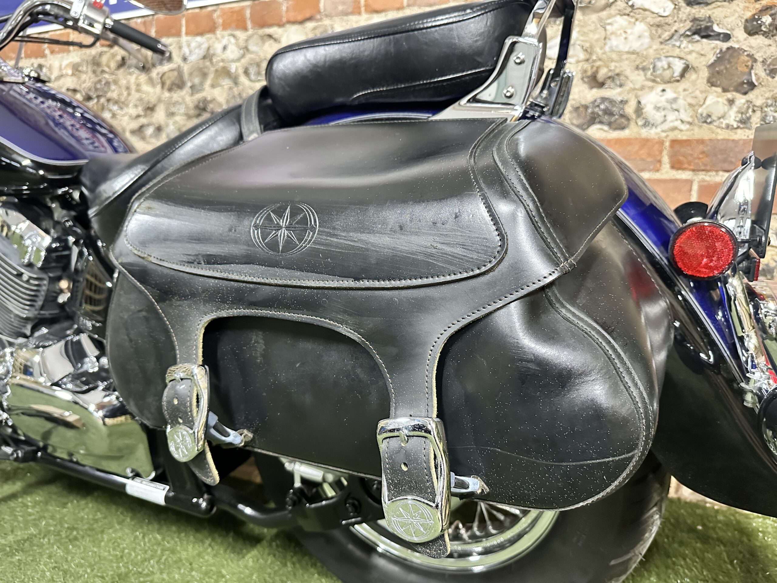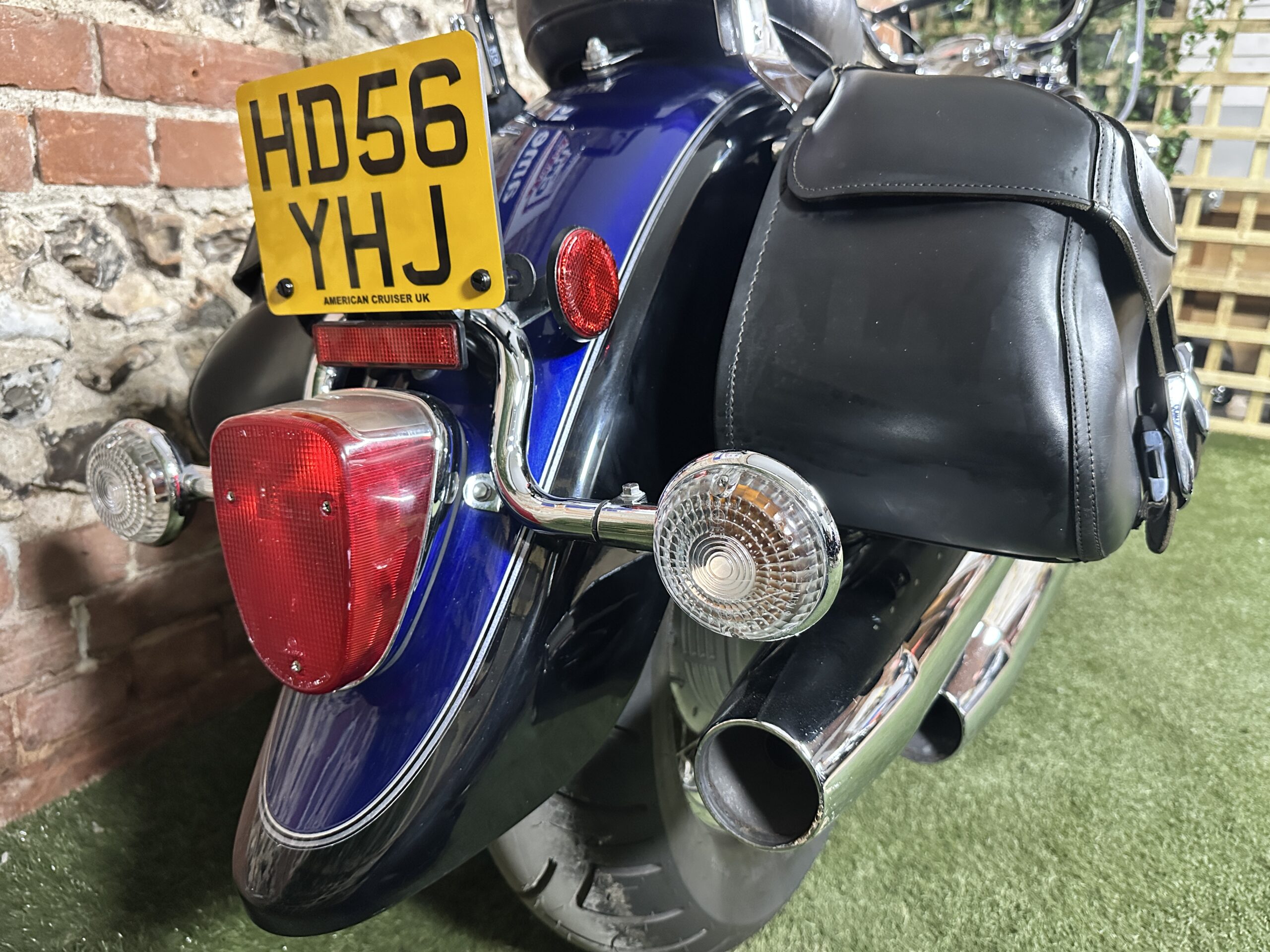 If you’re searching for a mid-size cruiser that blends classic style, bulletproof reliability, and genuine charm, this 2007 Yamaha XVS650 DragStar Classic (also known as the V-Star 650 Classic) is the bike for you. It’s a one-owner, garage-kept gem from Florida with only 3,703 miles on the clock – barely broken in! Finished in a striking Black/Blue metallic paint scheme, loaded with extra touring accessories, and meticulously serviced, this DragStar Classic is ready to rumble down UK roads in style.