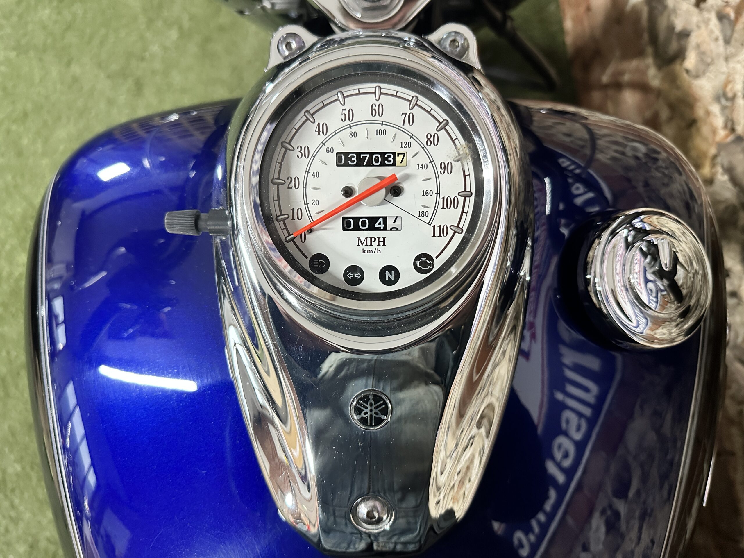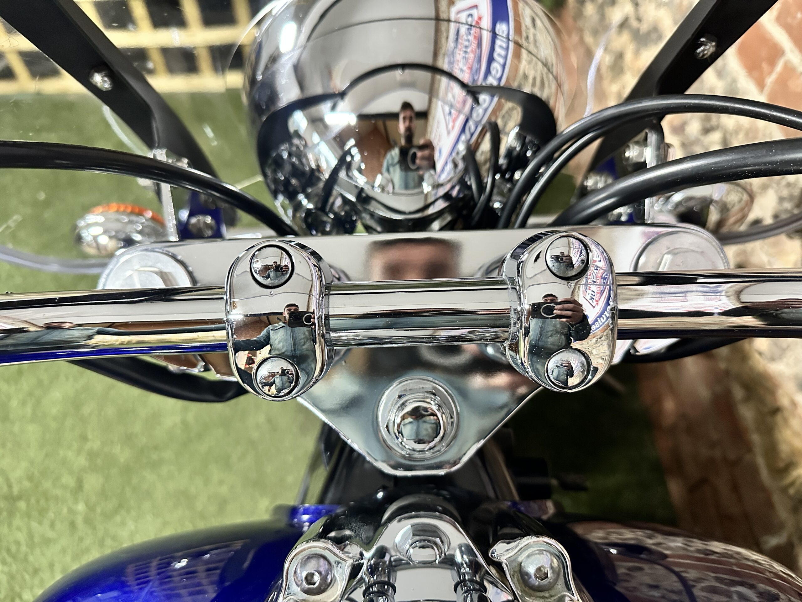 It’s rare to find a 2007 cruiser with under 4k miles, but this XVS650 Classic has only 3,703 miles from new, averaging barely a few hundred miles per year. The single owner in Florida clearly treated this bike as a pride and joy. Thanks to Florida’s ideal climate – no harsh winters, no road salt – the condition of this bike is outstanding. The frame, chrome, alloy and paintwork are all extremely well-preserved and showcase the care it’s received. The bike was garage kept its entire life, so there’s no UV fading on the paint or seat, and no corrosion on the brightwork. All chrome pieces (engine covers, exhaust, headlight, etc.) shine like mirrors, and the two-tone Black/Blue paint looks almost new. You truly must see it in person – it’s as close to showroom condition as you could hope for on a 2007 machine.