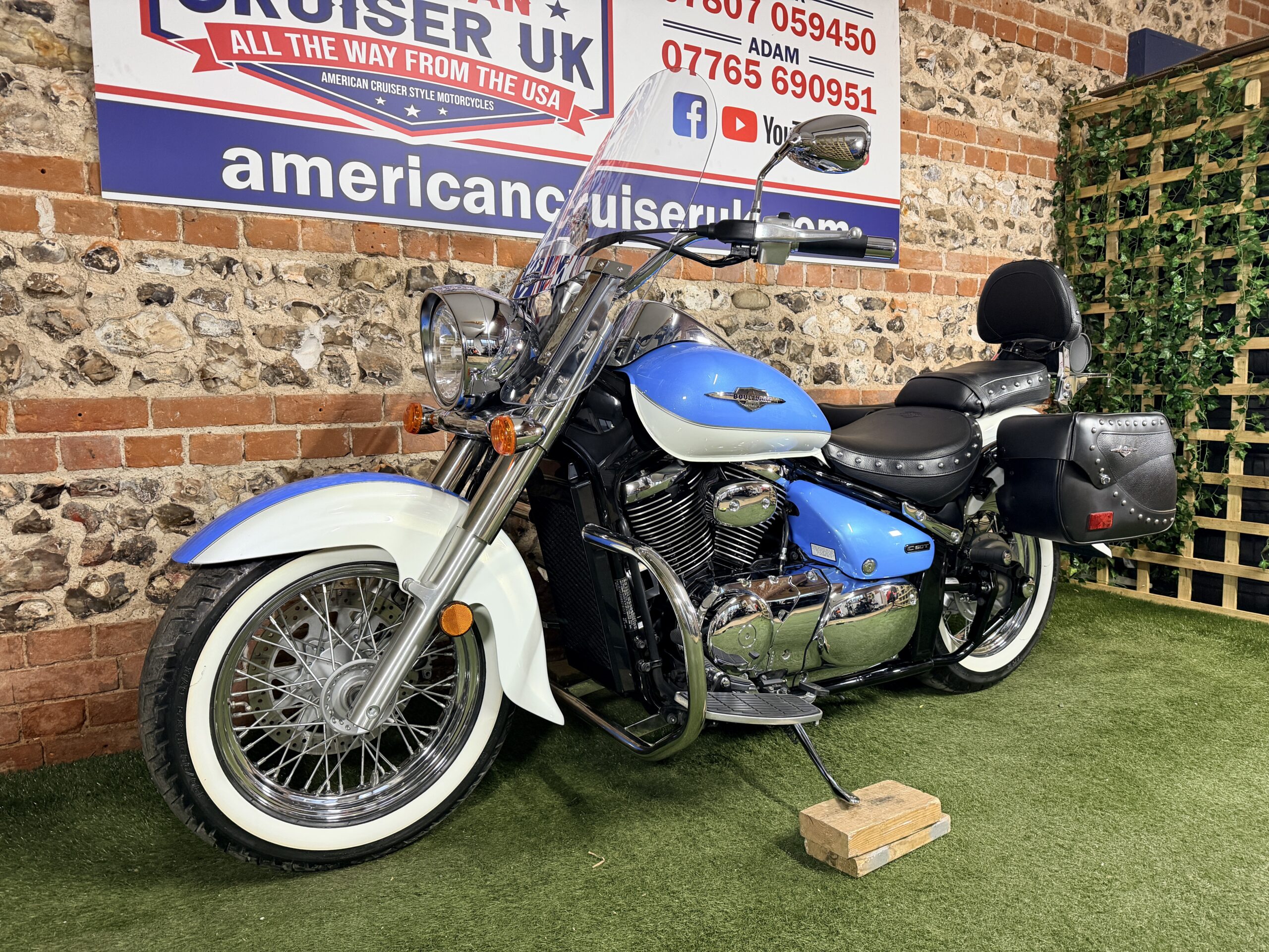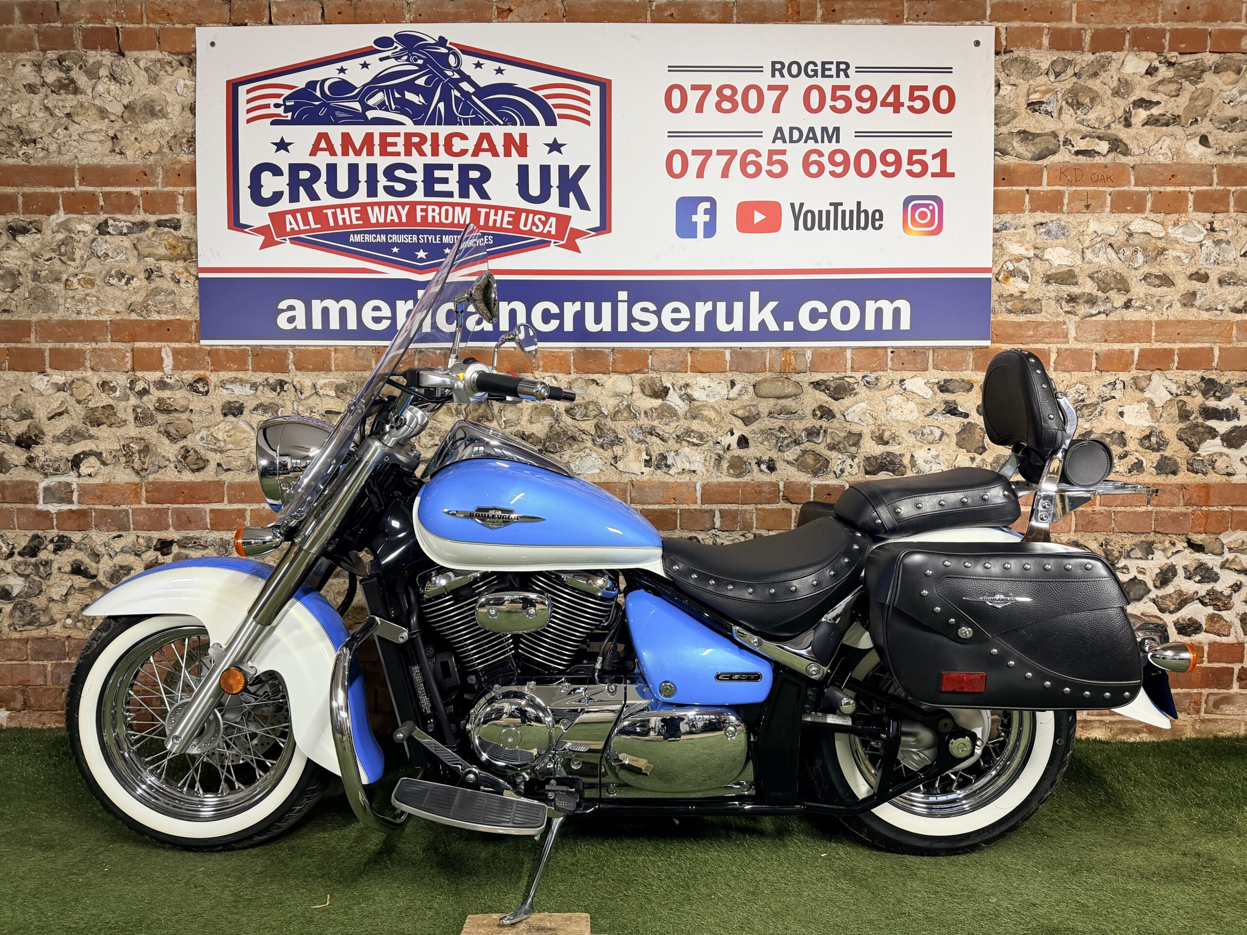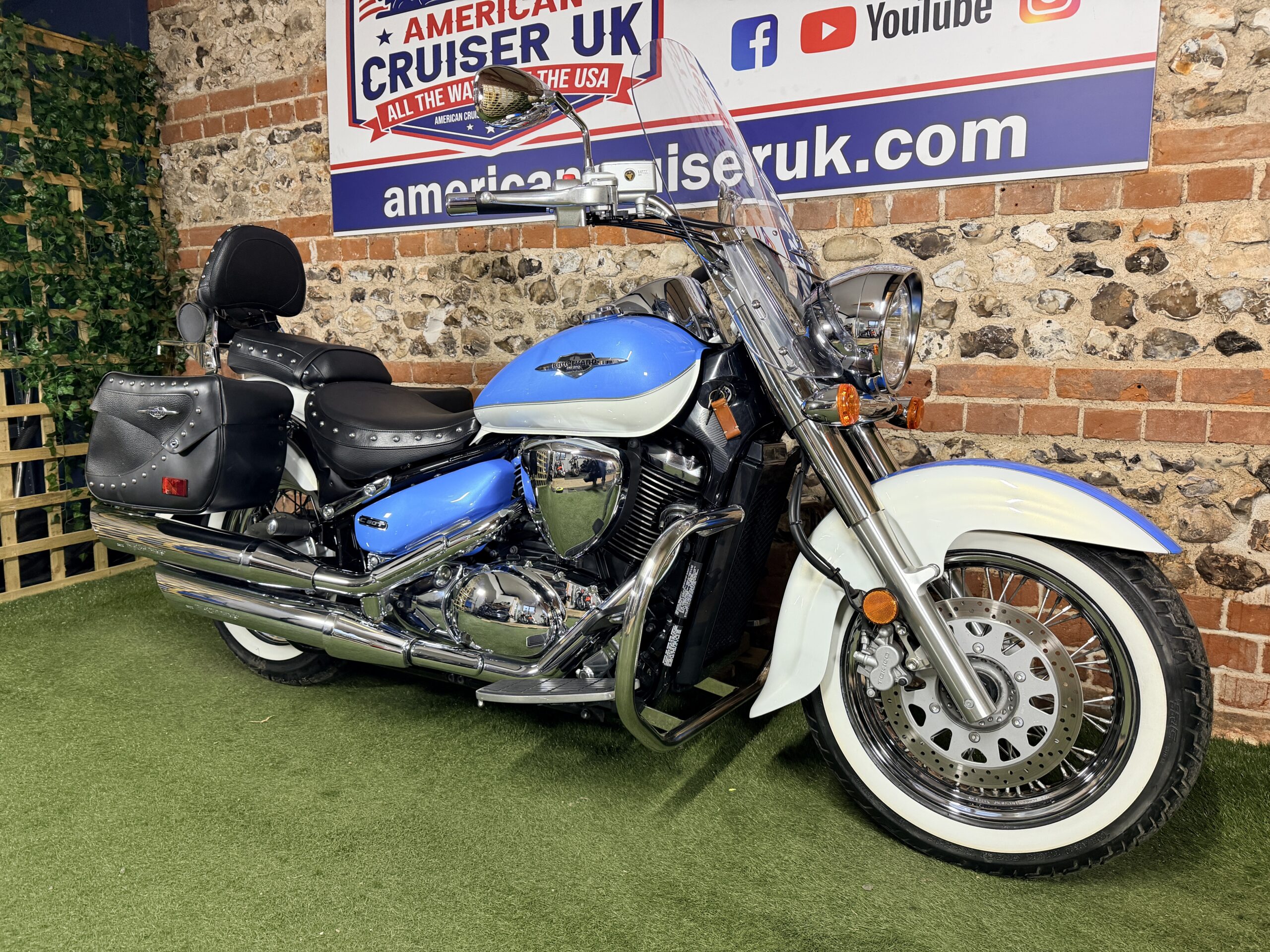 We at American Cruiser UK are excited to present a rare 2009 Suzuki Boulevard C50T for sale here in Britain. This fuel-injected 805cc American import cruiser motorcycle is a true gem with only 4,726 miles on the clock and an immaculate factory Sky Blue and White two-tone finish with matching whitewall tyres. If you’re looking for a low mileage cruiser for sale that combines classic style, modern reliability, and a dash of American flair, this Boulevard C50T should be at the top of your list. And at £5,995, it’s a fantastic opportunity to own a like-new classic cruiser without the new-bike price tag.