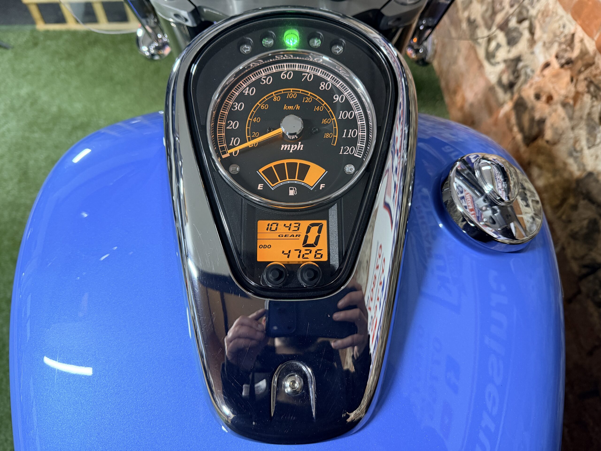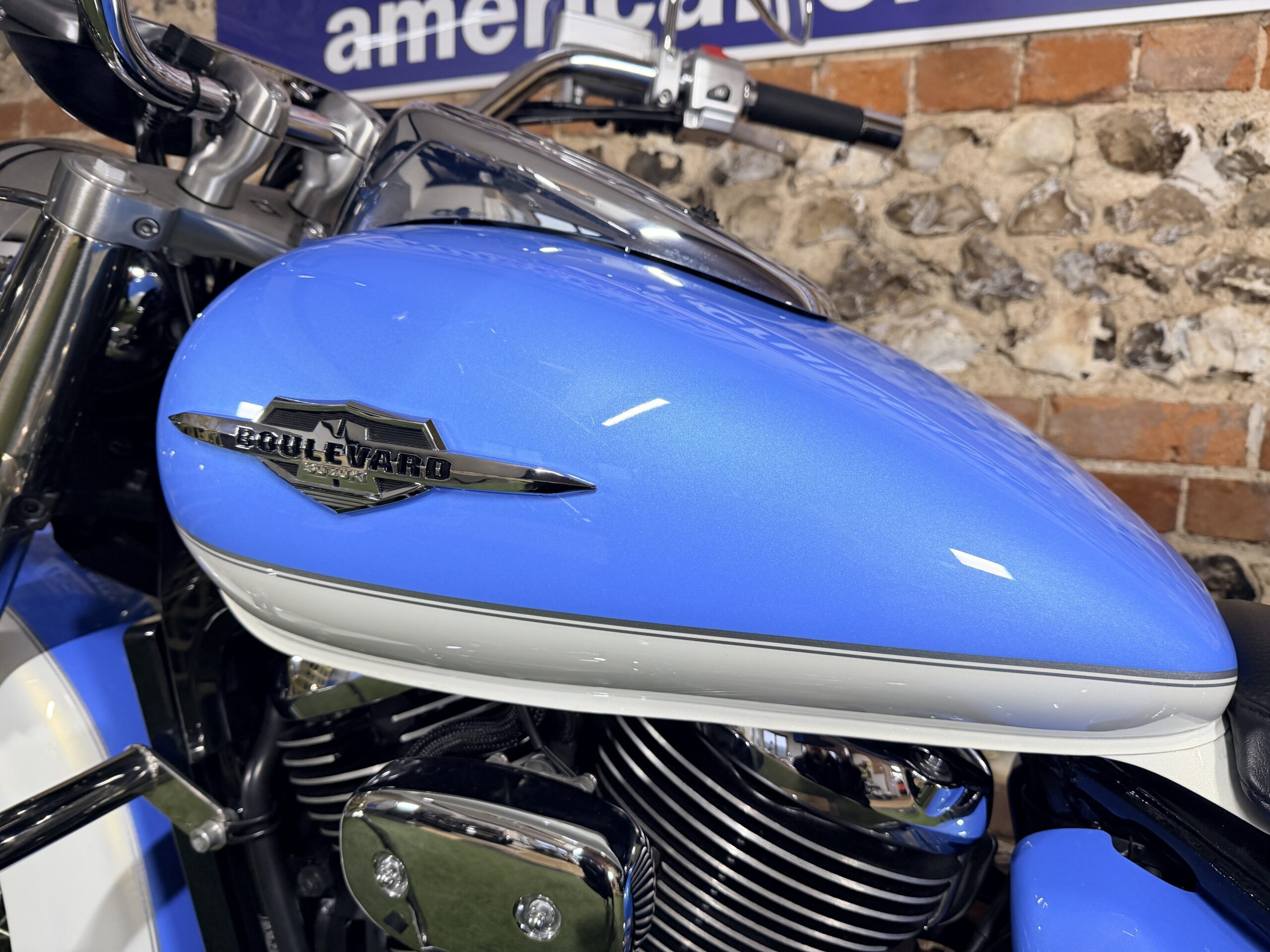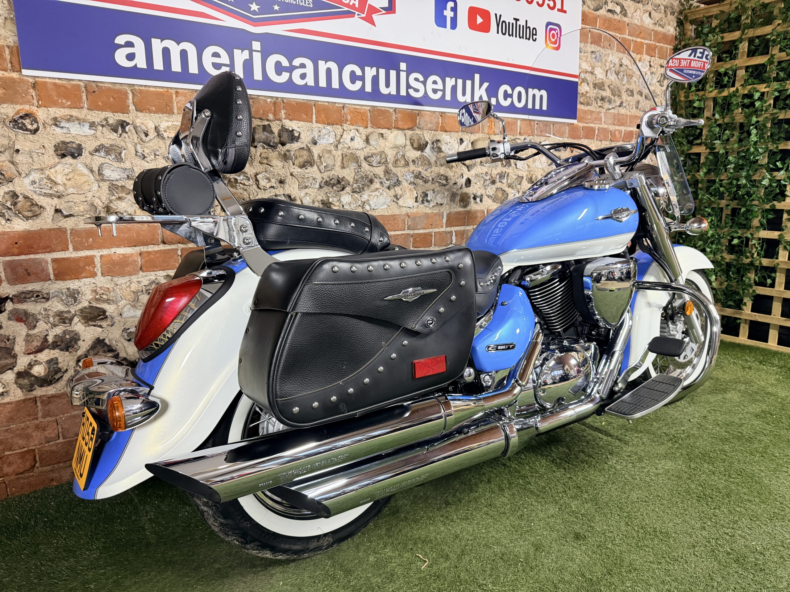 We at American Cruiser UK are excited to present a rare 2009 Suzuki Boulevard C50T for sale here in Britain. This fuel-injected 805cc American import cruiser motorcycle is a true gem with only 4,726 miles on the clock and an immaculate factory Sky Blue and White two-tone finish with matching whitewall tyres. If you’re looking for a low mileage cruiser for sale that combines classic style, modern reliability, and a dash of American flair, this Boulevard C50T should be at the top of your list. And at £5,995, it’s a fantastic opportunity to own a like-new classic cruiser without the new-bike price tag.