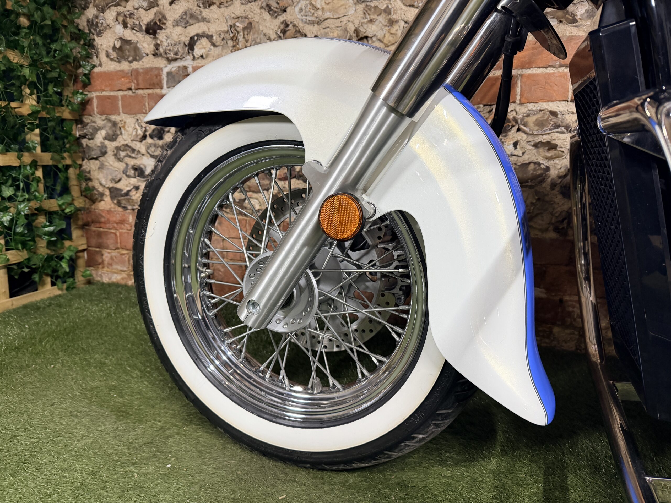 Unique Two-Tone Styling and Chrome – This American import features a gorgeous two-tone paint job (Sky Blue & White) that was rarely if ever seen on UK models. It oozes 1950s Americana charm and will turn heads at every petrol station. The bike is also decked out in chrome – from the staggered dual exhaust pipes to the lamp housings and covers – giving it an authentic classic cruiser presence. Suzuki’s Boulevard line was known for embracing American cruiser heritage with rich paintwork, glittering chrome, and deep valanced fenders, and this C50T is a prime example. It’s a rolling piece of art that stands out in any lineup of cruisers.