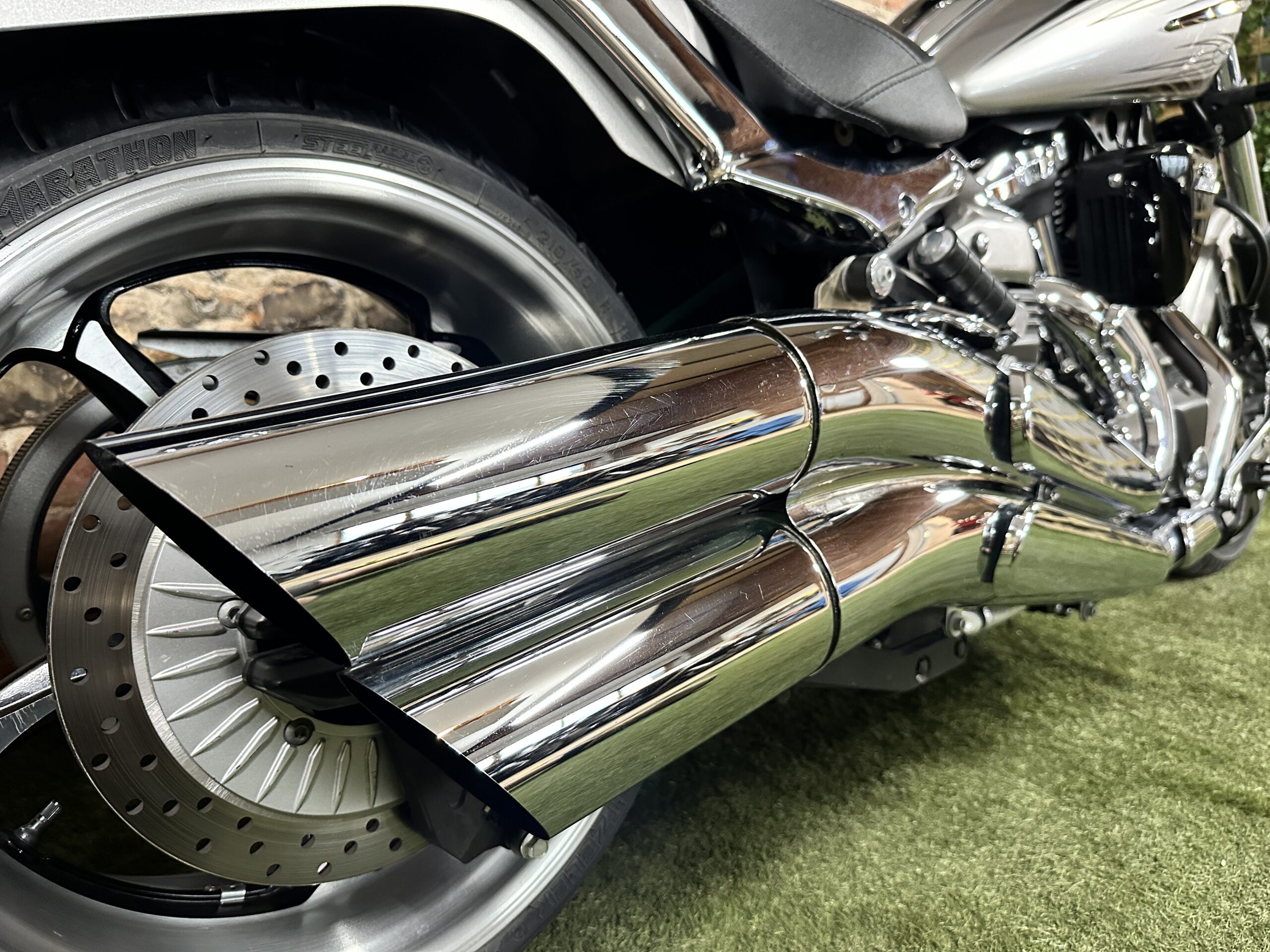 Standard exhaust system retained, but with baffles removed and shortened tips to enhance both the aesthetic and deliver a deep, resonant V-twin rumble