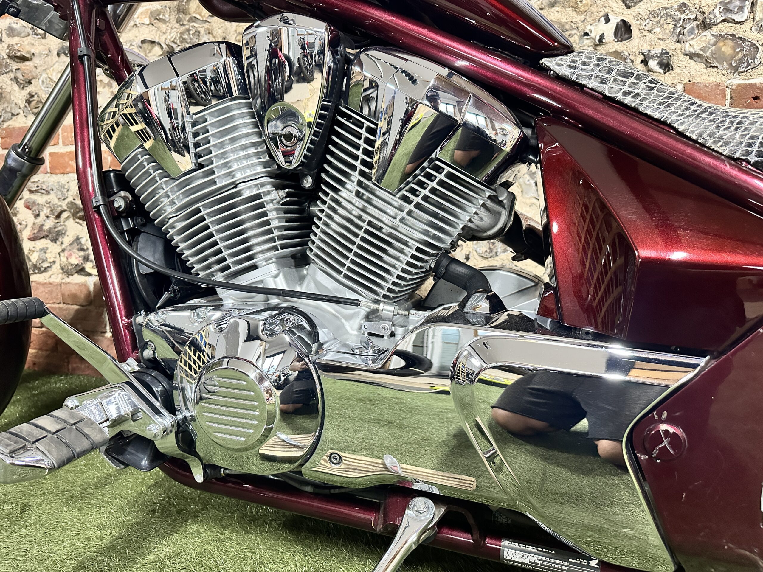 This is not a standard factory bike — it has undergone an extensive custom build featuring chrome enhancements, performance upgrades, and a number of bespoke styling details to elevate its look and feel. It presents as a unique, high-end example that’s road-ready and suitable for shows, collections, or weekend riding.