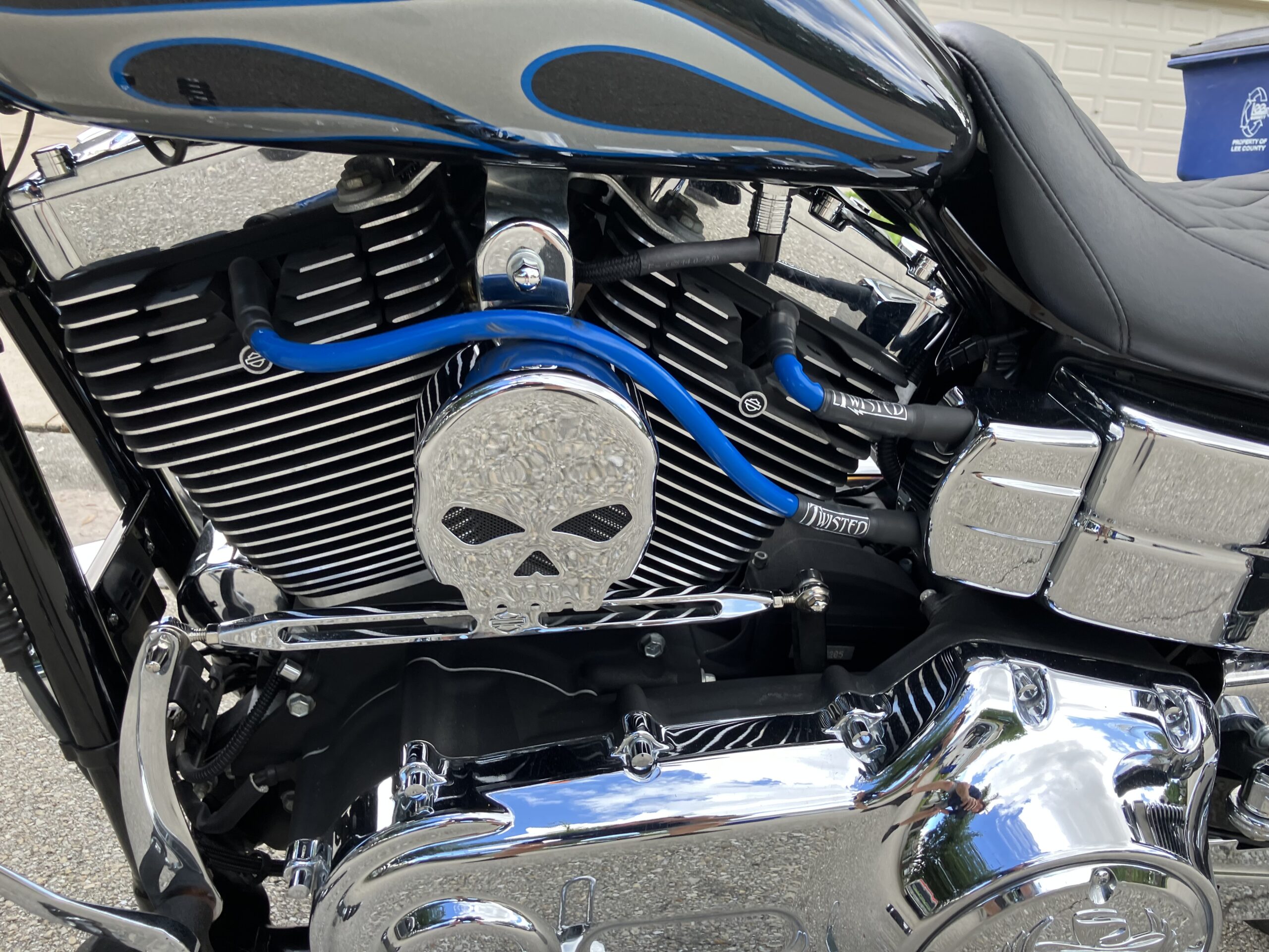 - Custom chrome air cleaner with matching derby cover