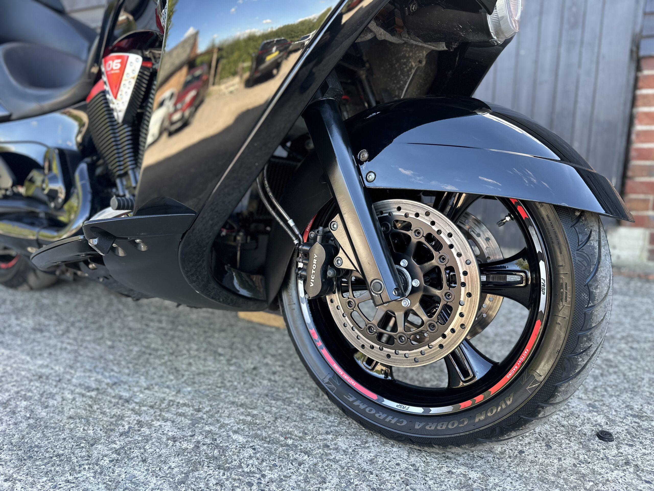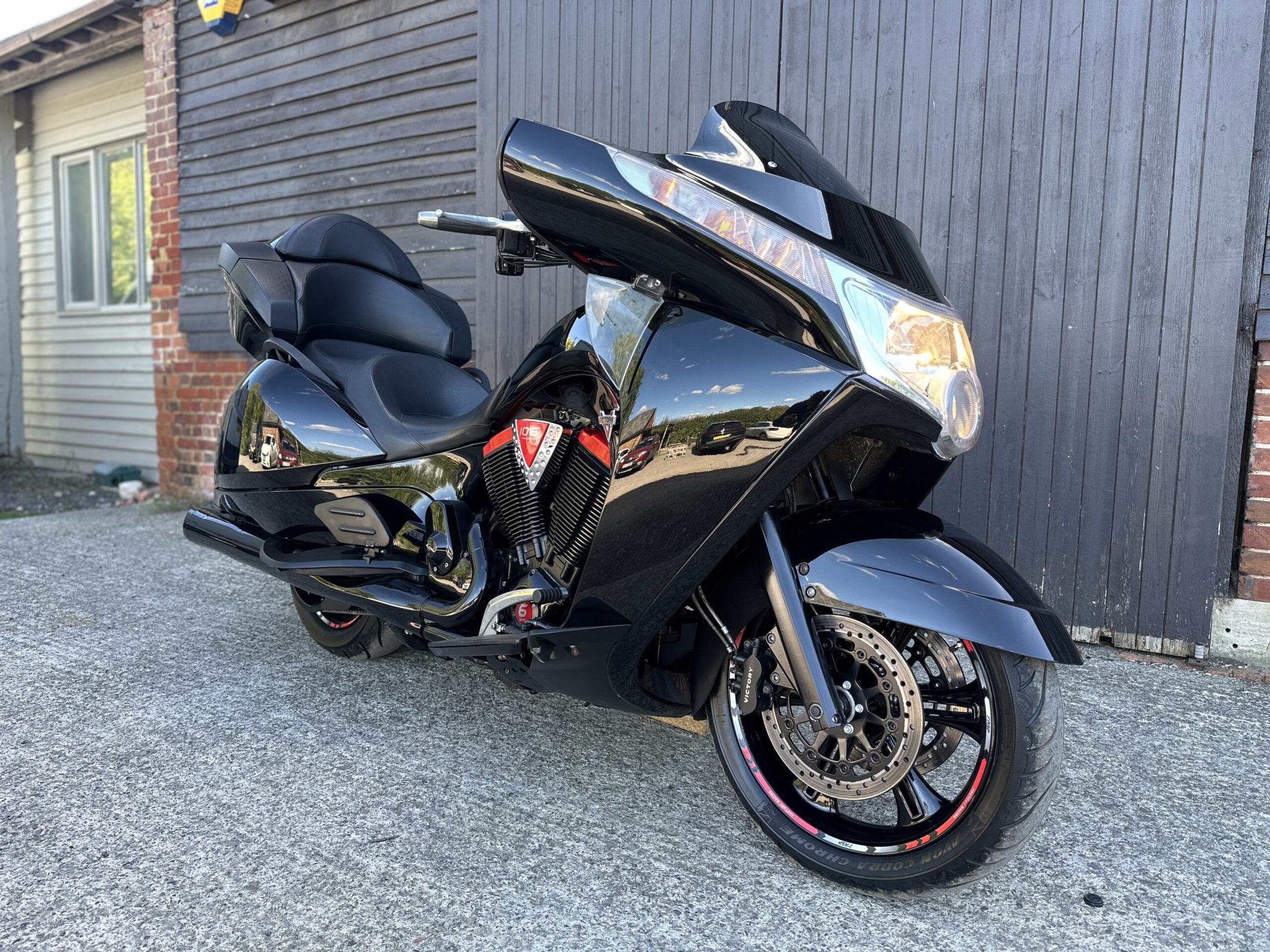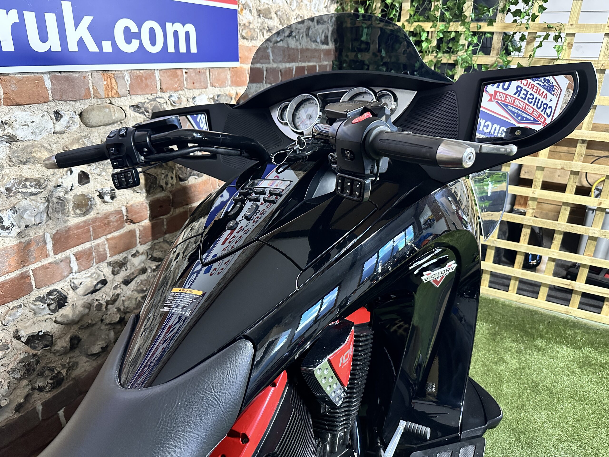 Custom Red Graphics: To complete the look, we added bespoke red graphics accenting the bodywork. These graphics were chosen to enhance the bike’s curves and match the red/black theme without being over-the-top. The result is a factory-plus appearance – still unmistakably a Victory Vision, but with a unique American Cruiser UK twist that will turn heads at every petrol station and bike night.