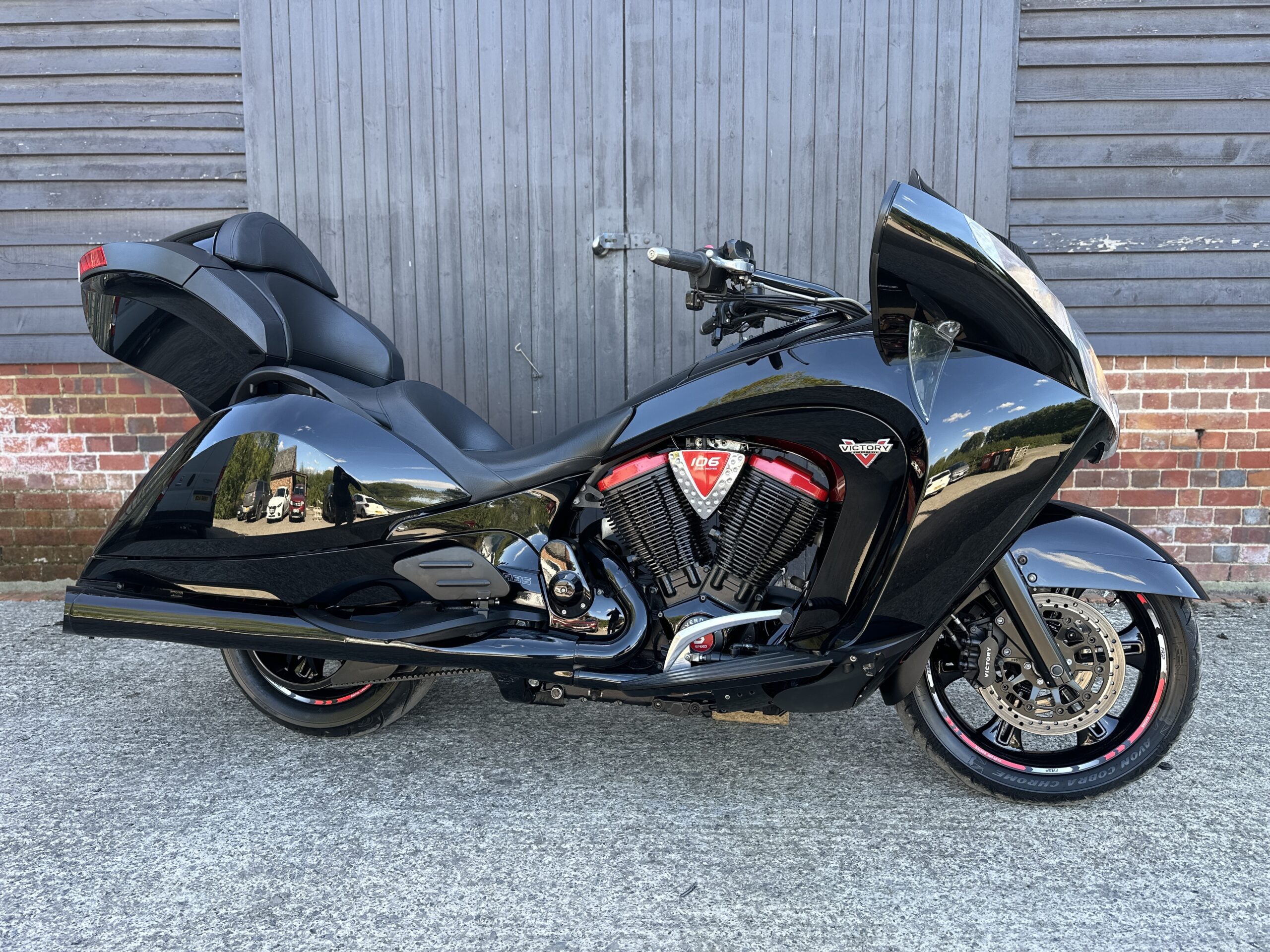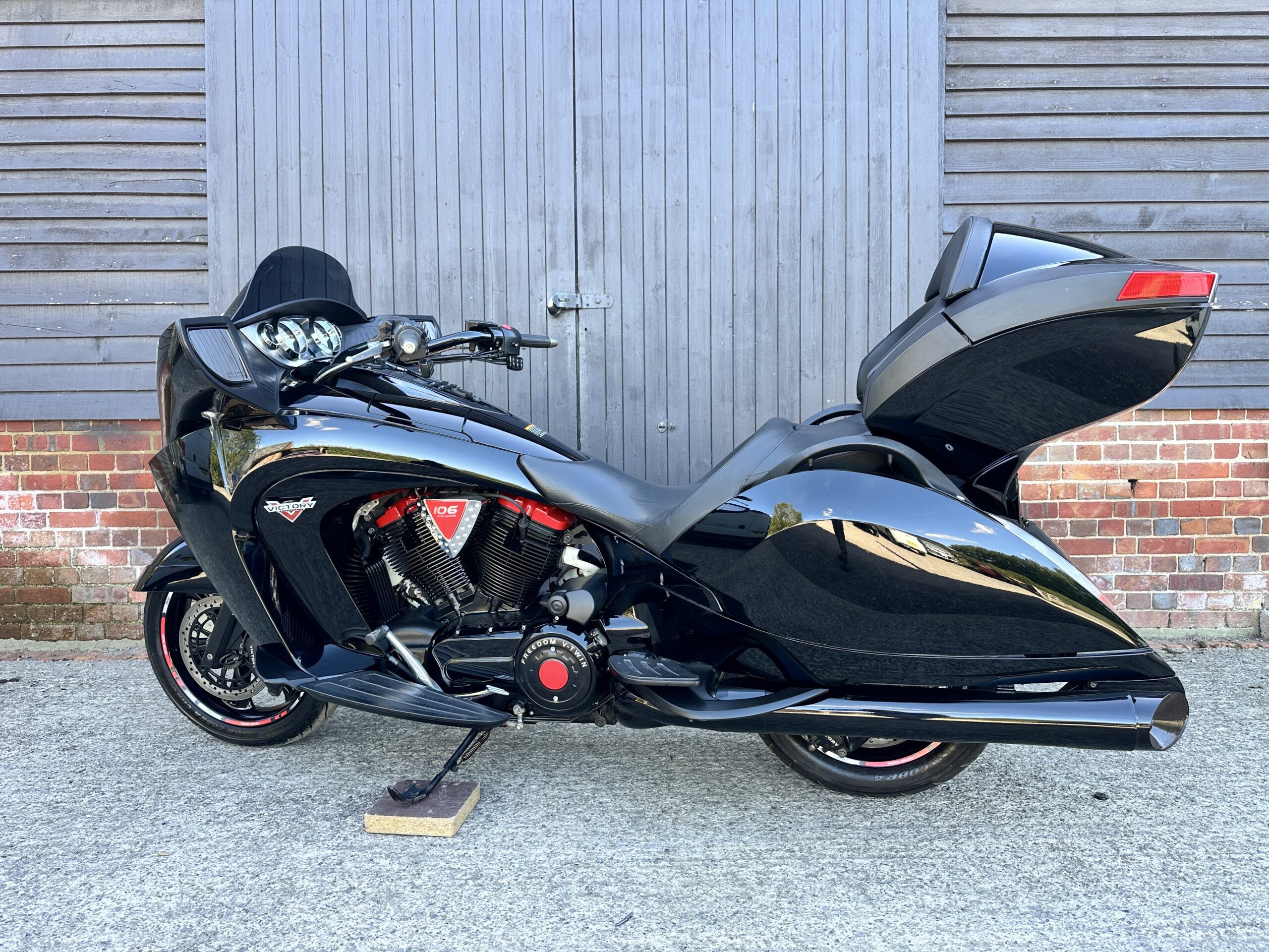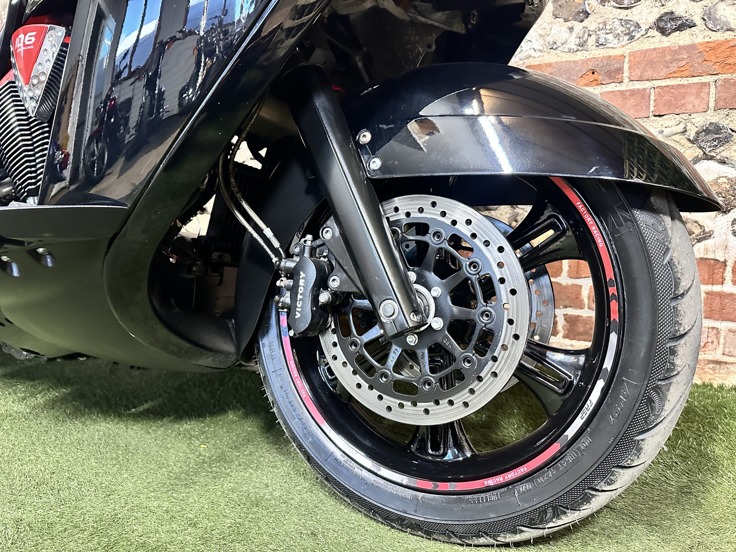 Custom Red Graphics: To complete the look, we added bespoke red graphics accenting the bodywork. These graphics were chosen to enhance the bike’s curves and match the red/black theme without being over-the-top. The result is a factory-plus appearance – still unmistakably a Victory Vision, but with a unique American Cruiser UK twist that will turn heads at every petrol station and bike night.
