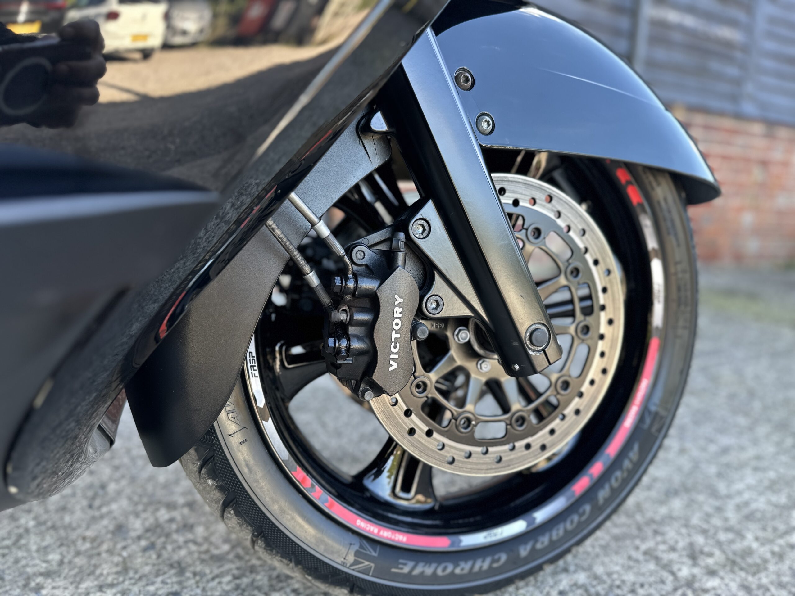 New Tyres: We fitted a brand-new Avon Cobra Chrome tyre on the front to ensure fresh, grippy rubber where it matters most, while the rear Avon Cobra still had plenty of life left, so it remains in place. Together, they now match as a proper Avon Cobra Chrome set, giving this heavy tourer the stability and cornering confidence it deserves. These tyres are known for their excellent grip in both wet and dry conditions, making them a smart choice for UK riding.