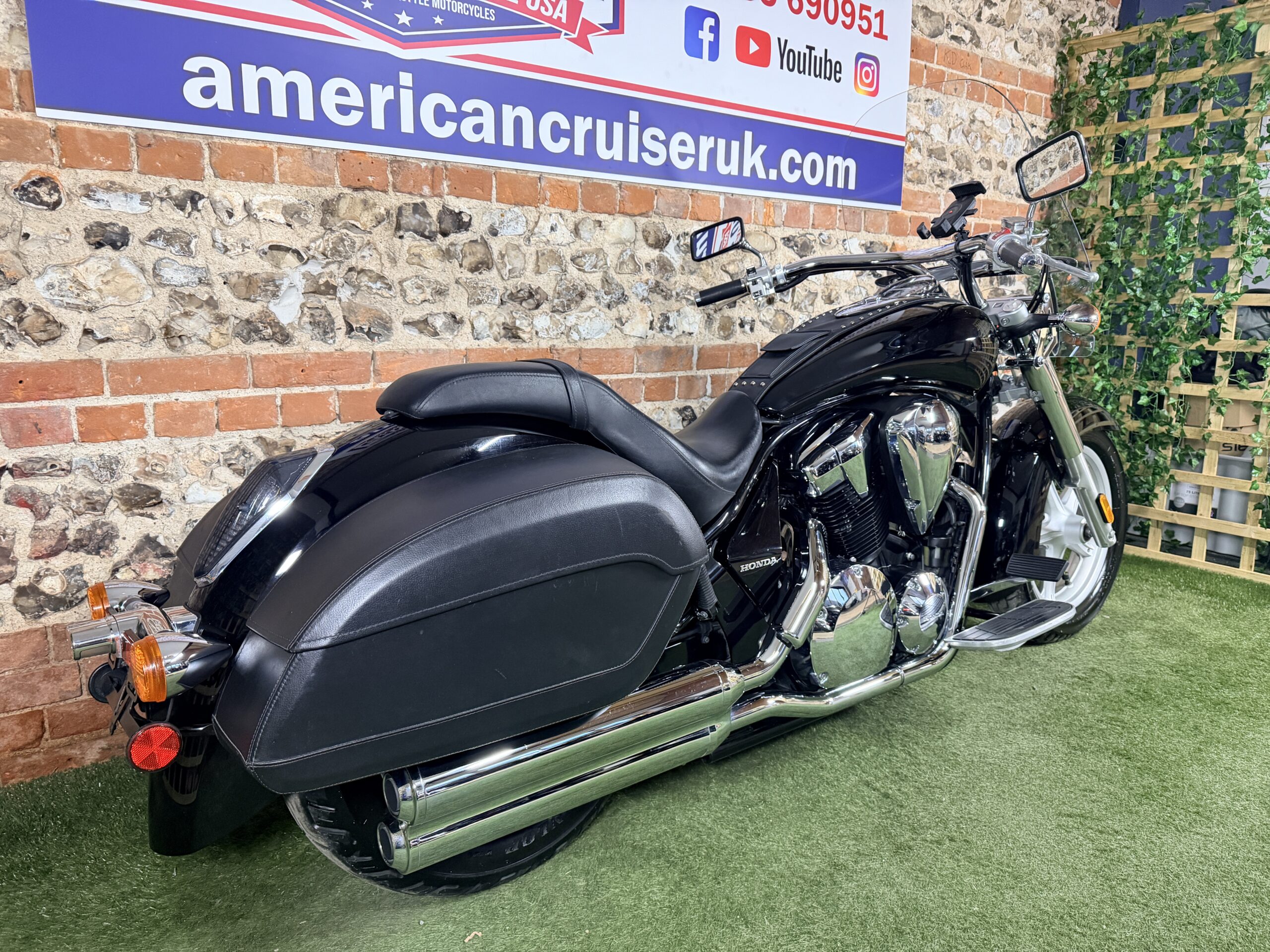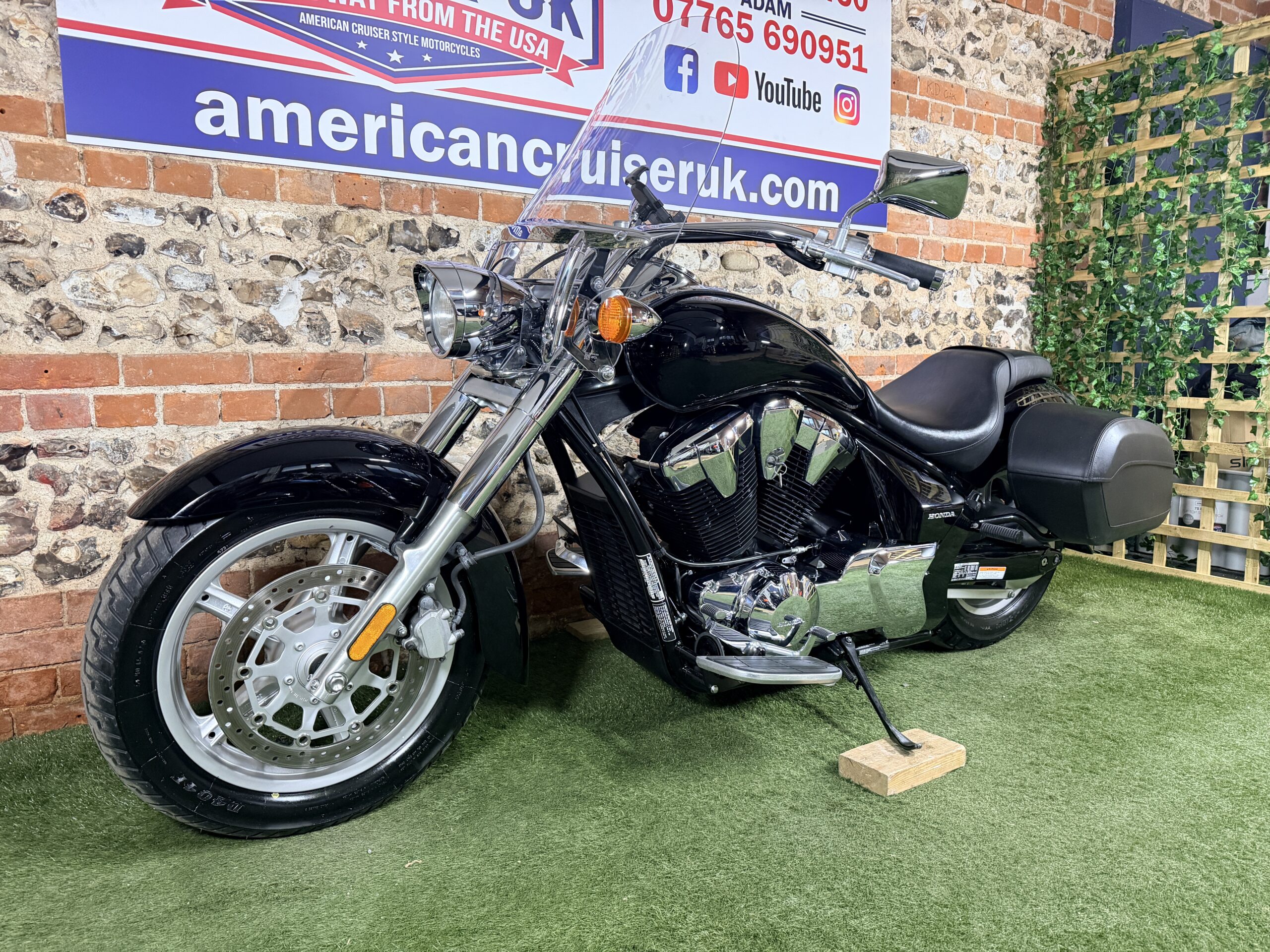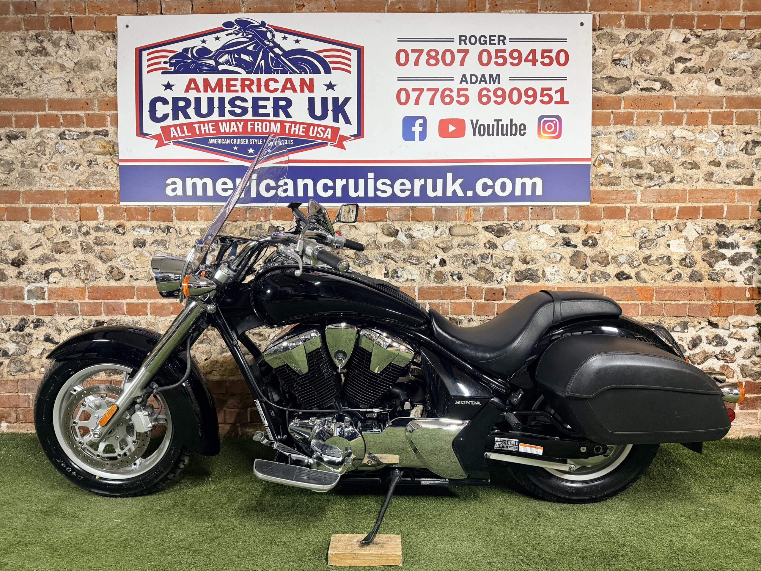 Here at American Cruiser UK, we are delighted to offer a genuinely eye-catching and very unusual Honda cruiser: a 1-owner 2015 Honda VT1300 Interstate, finished in black and showing just 8,469 miles from new. This bike has just arrived from Florida, where it has been garage kept from brand new, and the condition is excellent throughout. Please do watch the walkaround video, because it really shows just how well this machine has been looked after. The bike is newly registered, has had its pre-delivery inspection, has passed its MOT with zero advisories, and is ready to ride.
