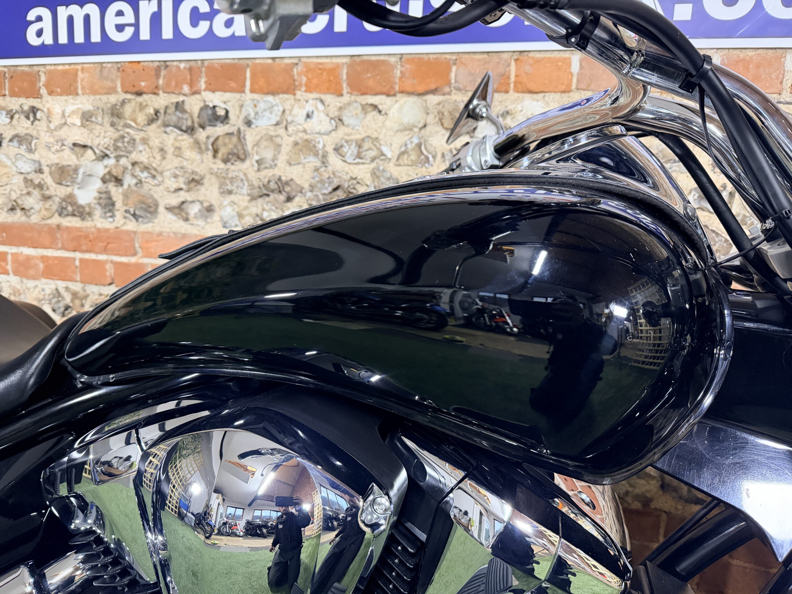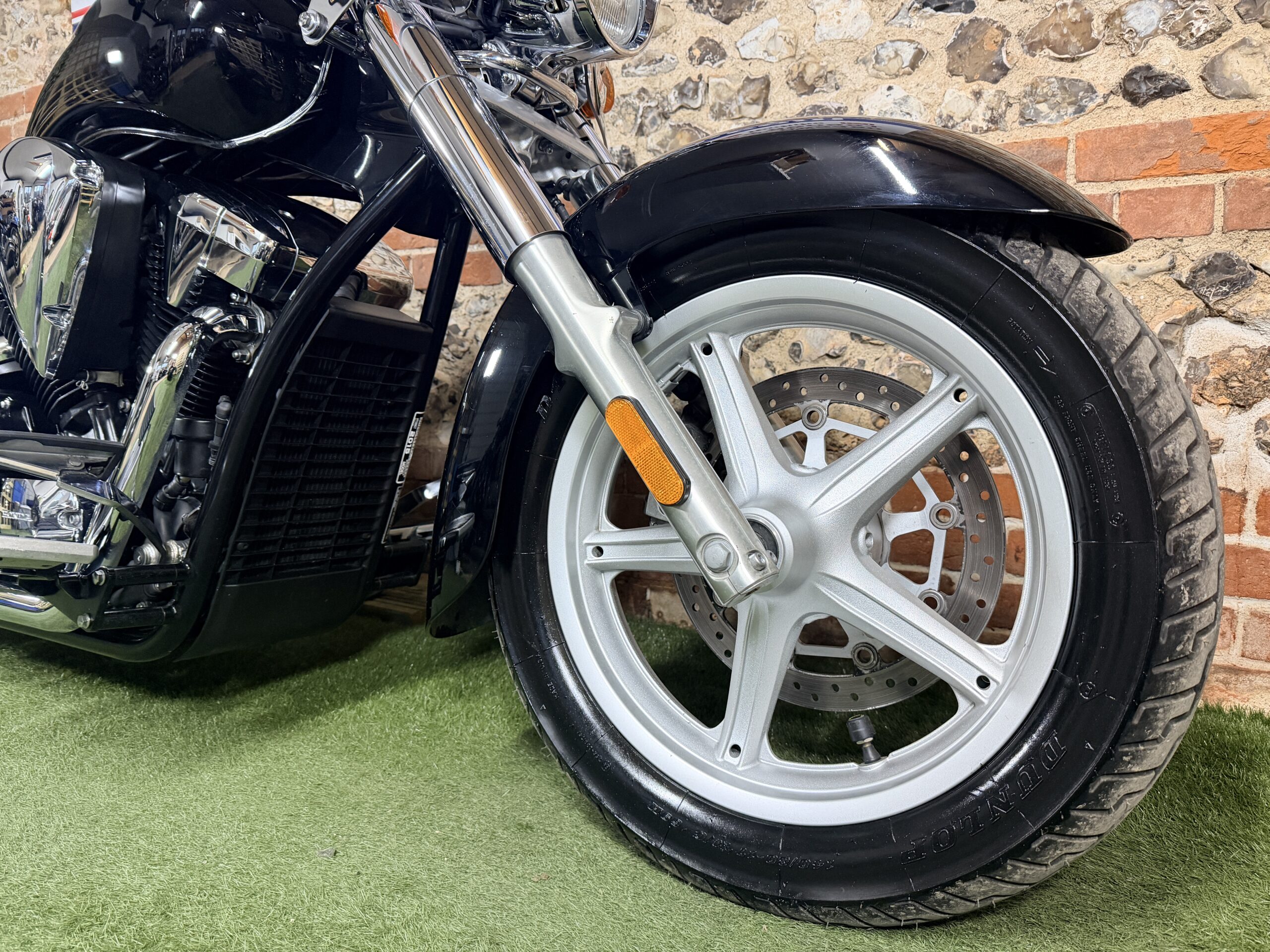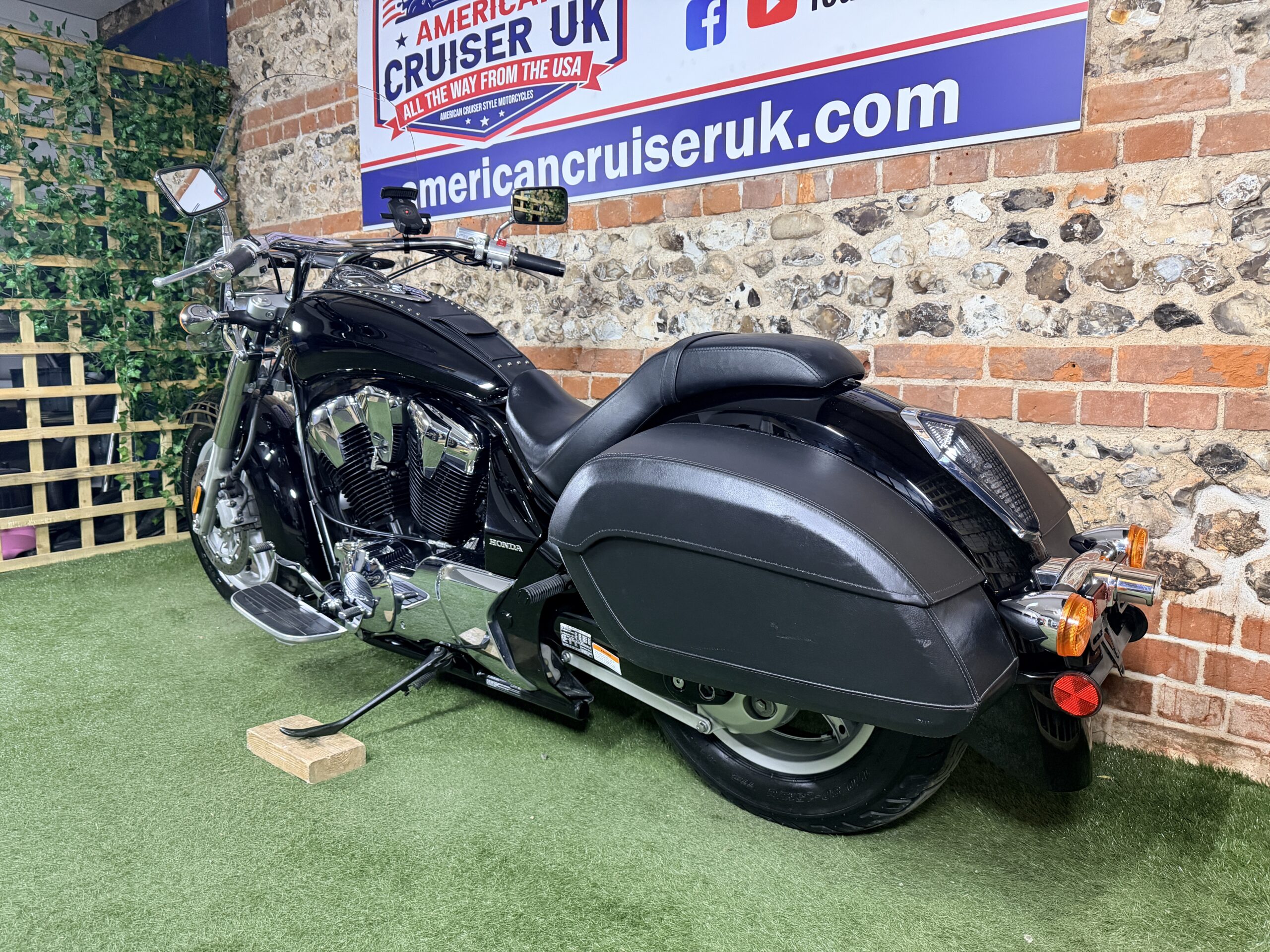Here at American Cruiser UK, we are delighted to offer a genuinely eye-catching and very unusual Honda cruiser: a 1-owner 2015 Honda VT1300 Interstate, finished in black and showing just 8,469 miles from new. This bike has just arrived from Florida, where it has been garage kept from brand new, and the condition is excellent throughout. Please do watch the walkaround video, because it really shows just how well this machine has been looked after. The bike is newly registered, has had its pre-delivery inspection, has passed its MOT with zero advisories, and is ready to ride.