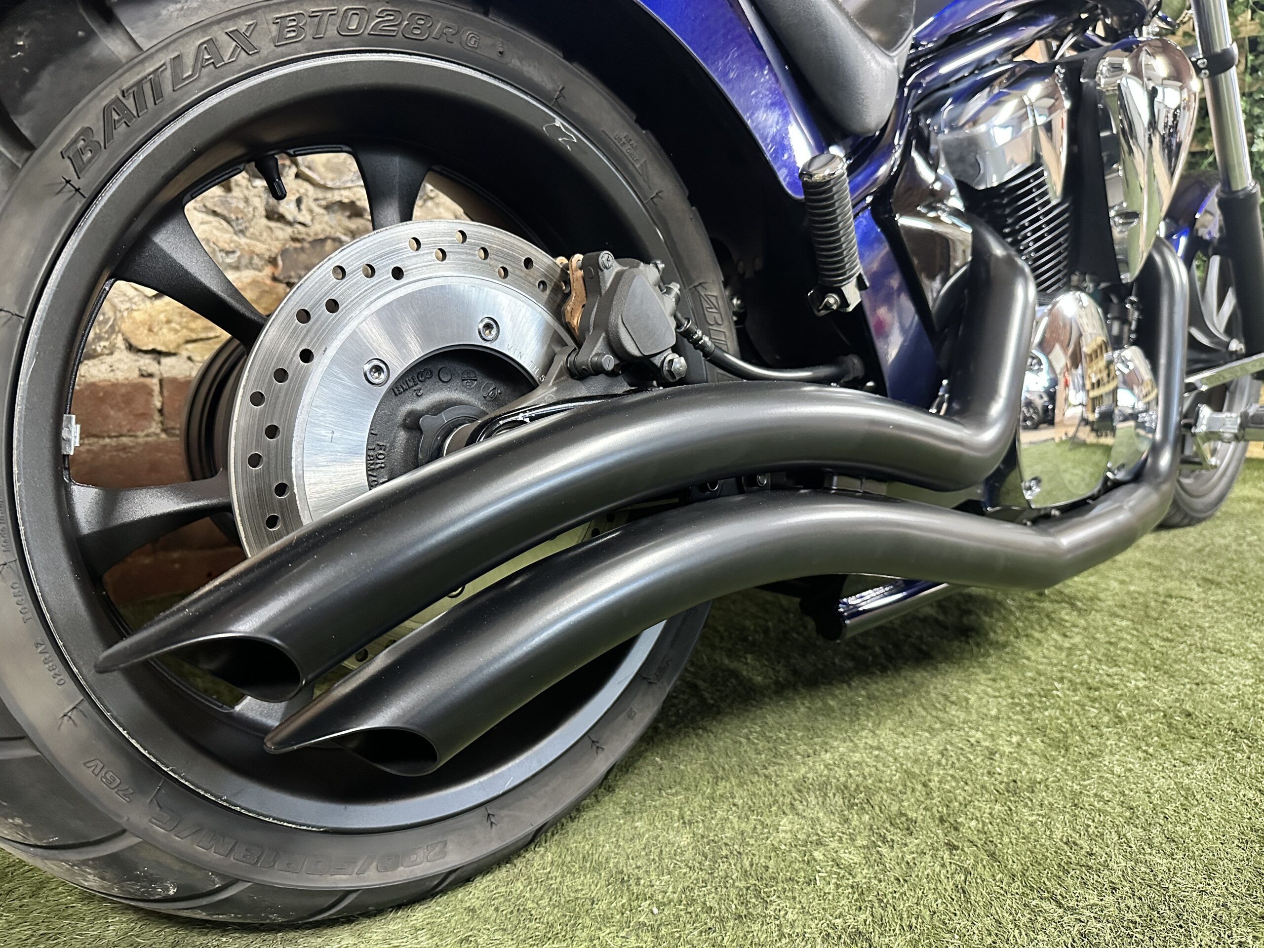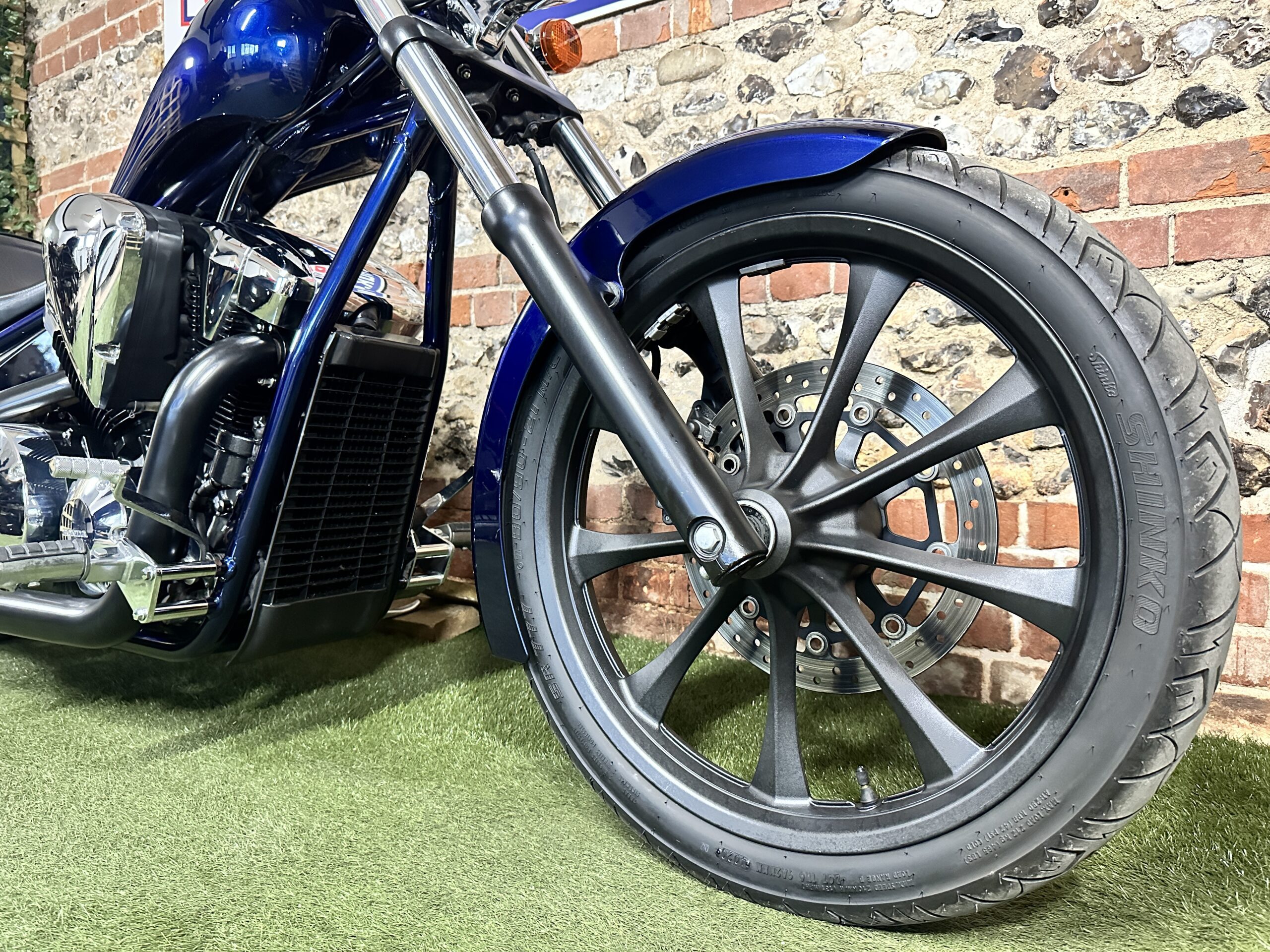 Power comes from Honda’s reliable 1312cc liquid-cooled V-twin. Delivering smooth, accessible torque, it’s tuned for relaxed cruising but has enough punch to put a grin on your face. Fuel injection keeps it smooth and reliable in all conditions, while disc brakes and a hidden rear shock bring modern-day safety and comfort without disturbing the chopper look. The result is a motorcycle that offers outrageous custom style with real-world usability.