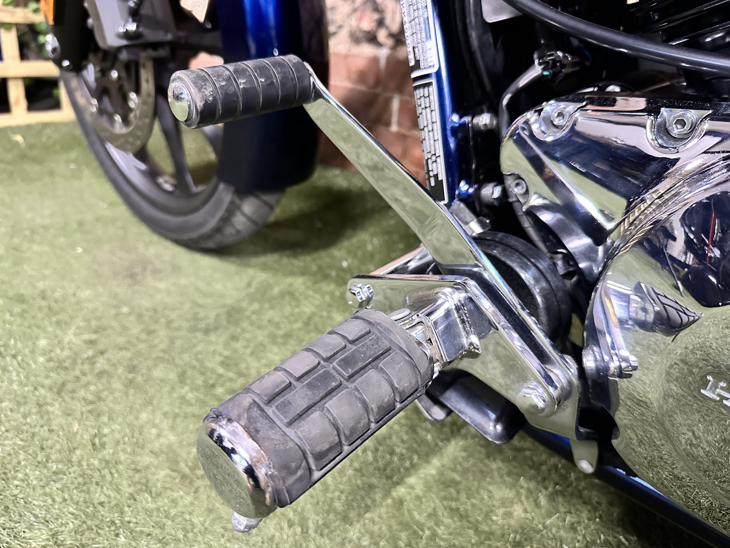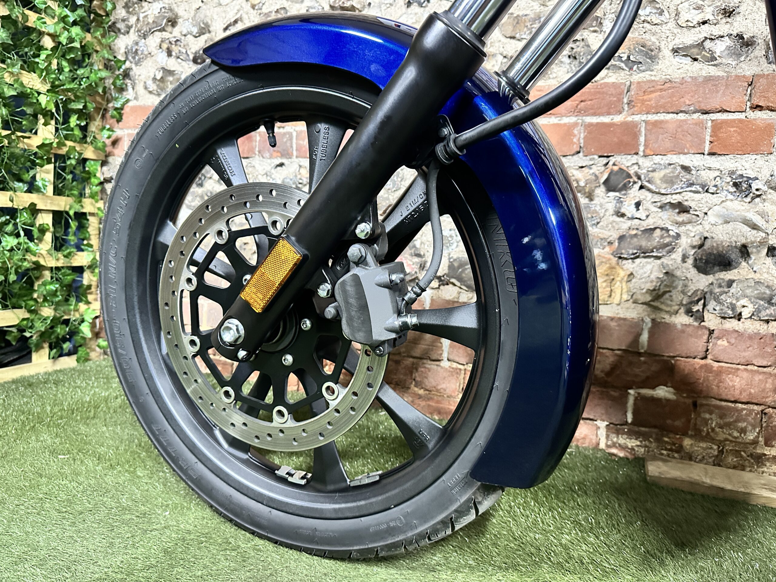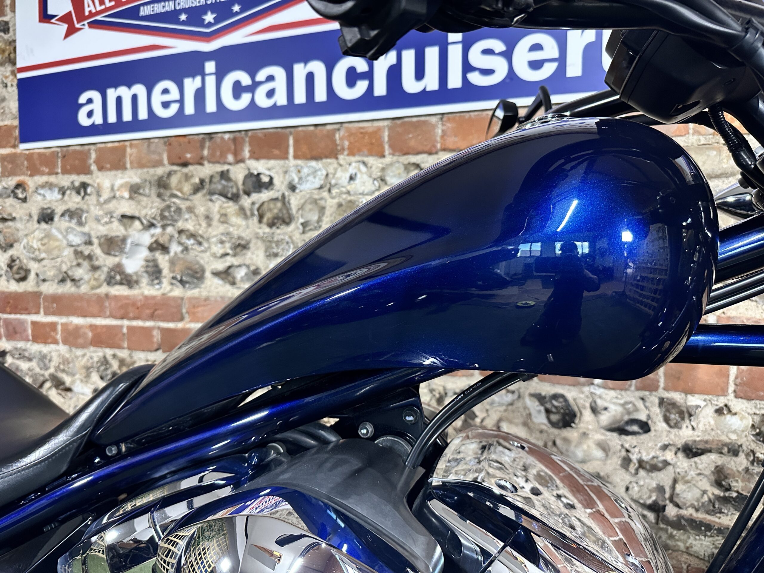 This bike is a true gem. A one-owner machine imported from Florida, it’s in immaculate condition with only 12,888 miles on the clock. Finished in a stunning deep metallic blue, the paintwork looks spectacular in the sunlight. The blacked-out engine, wheels, forks, and exhaust add a modern, aggressive twist to the design, setting it apart from earlier chrome-heavy versions.