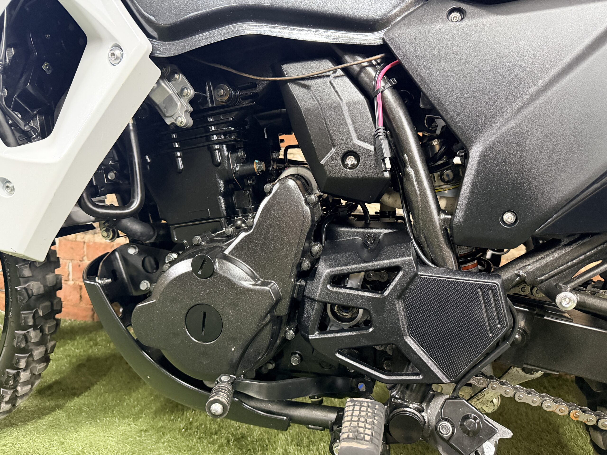 This 2024 Kawasaki KLR650S ABS is an exceptionally rare opportunity to own a nearly new example of one of motorcycling’s most respected and durable dual-sport machines — a bike with genuine global cult status, but one that has effectively been absent from UK showrooms for decades. Kawasaki’s current UK line-up does not include the KLR650, and the model is widely understood to have been discontinued in the UK in 2003. It then continued in various overseas markets until 2018, when production came to an end amid tightening emissions requirements. Kawasaki later brought the KLR650 back as an all-new 2022 model, and this bike is one of those newer-generation, reintroduced machines.