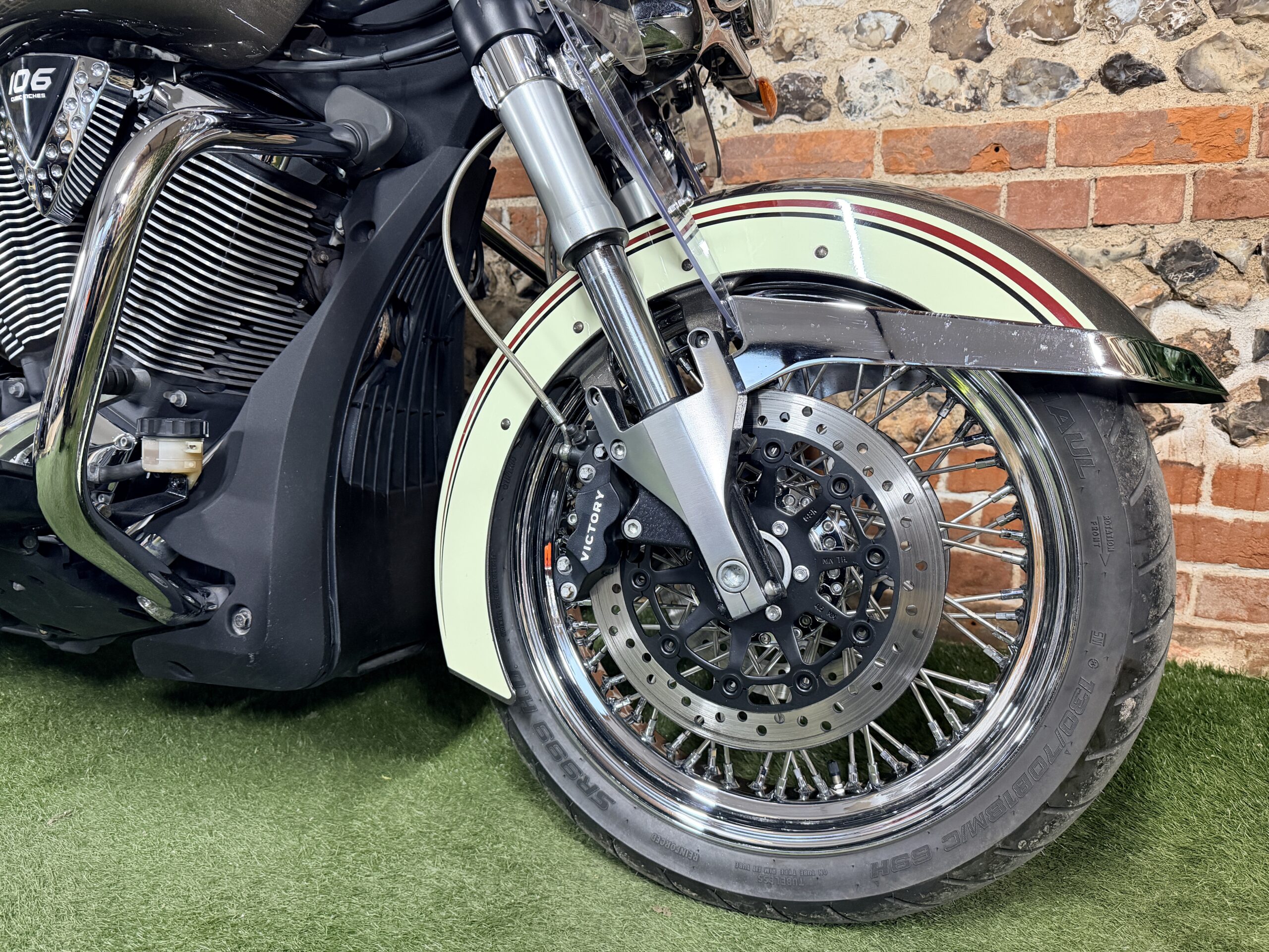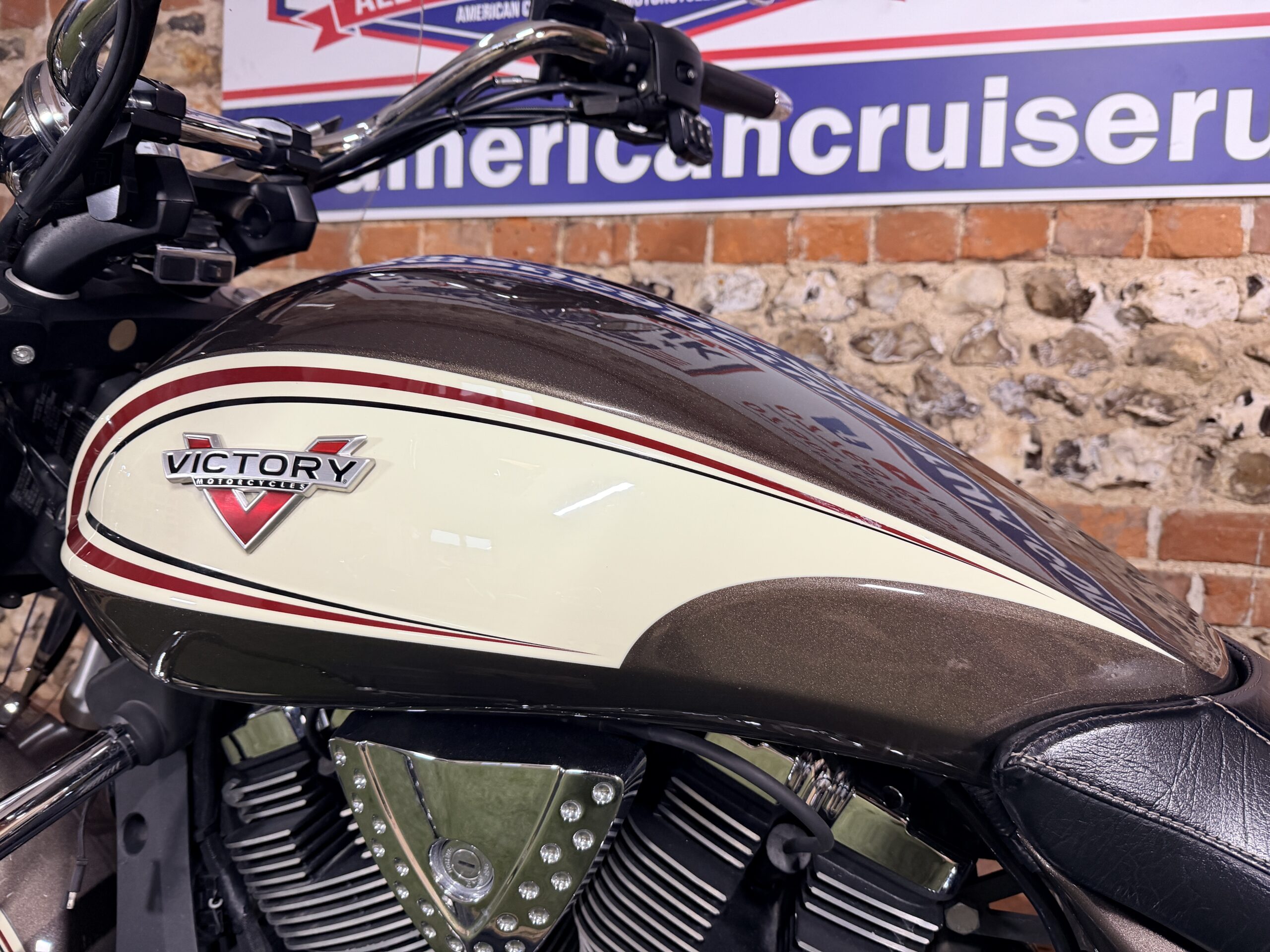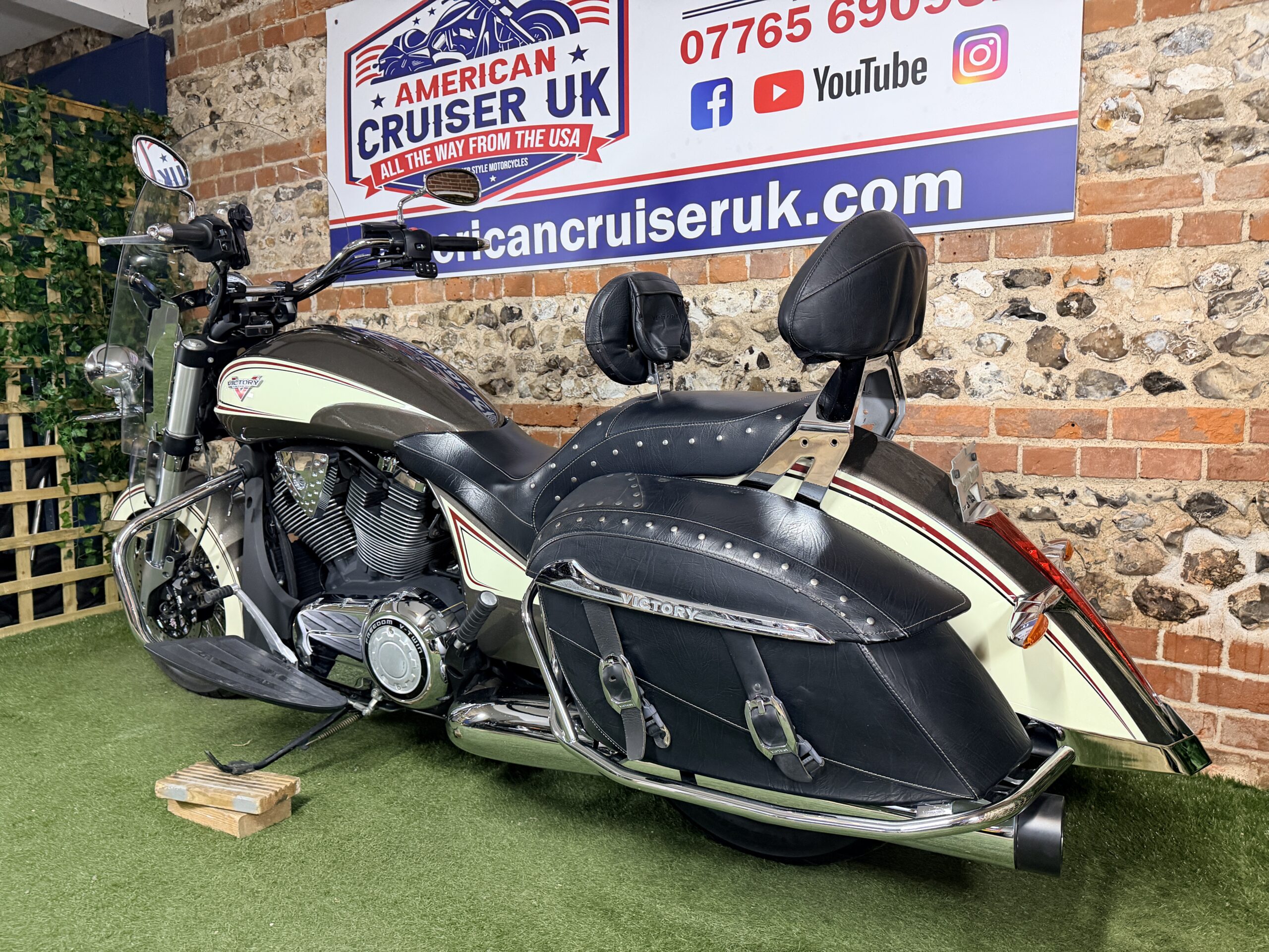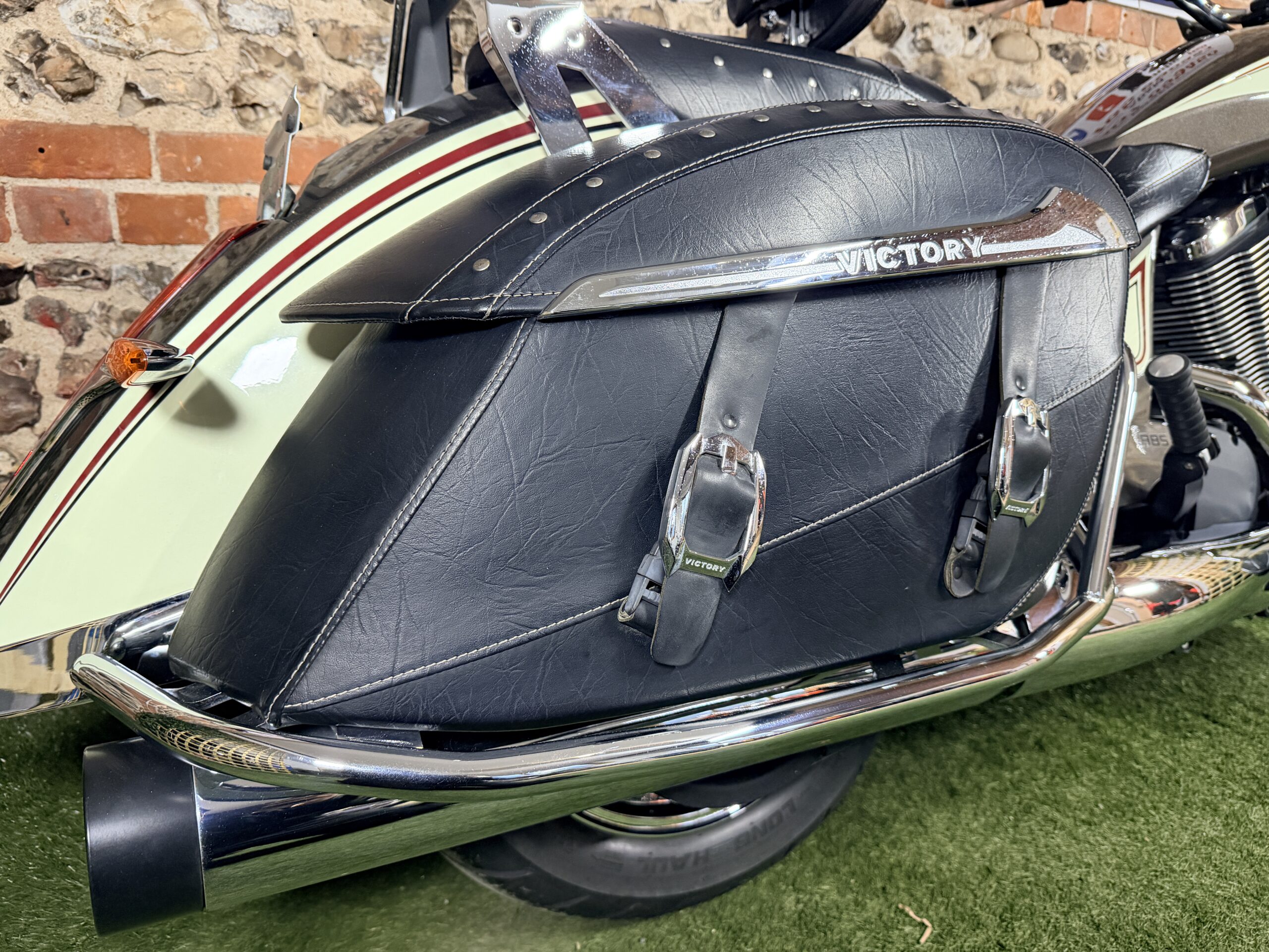 Touring Features: Large Victory touring windscreen (quick-release), spacious hard leather panniers (lockable saddlebags) for ample storage